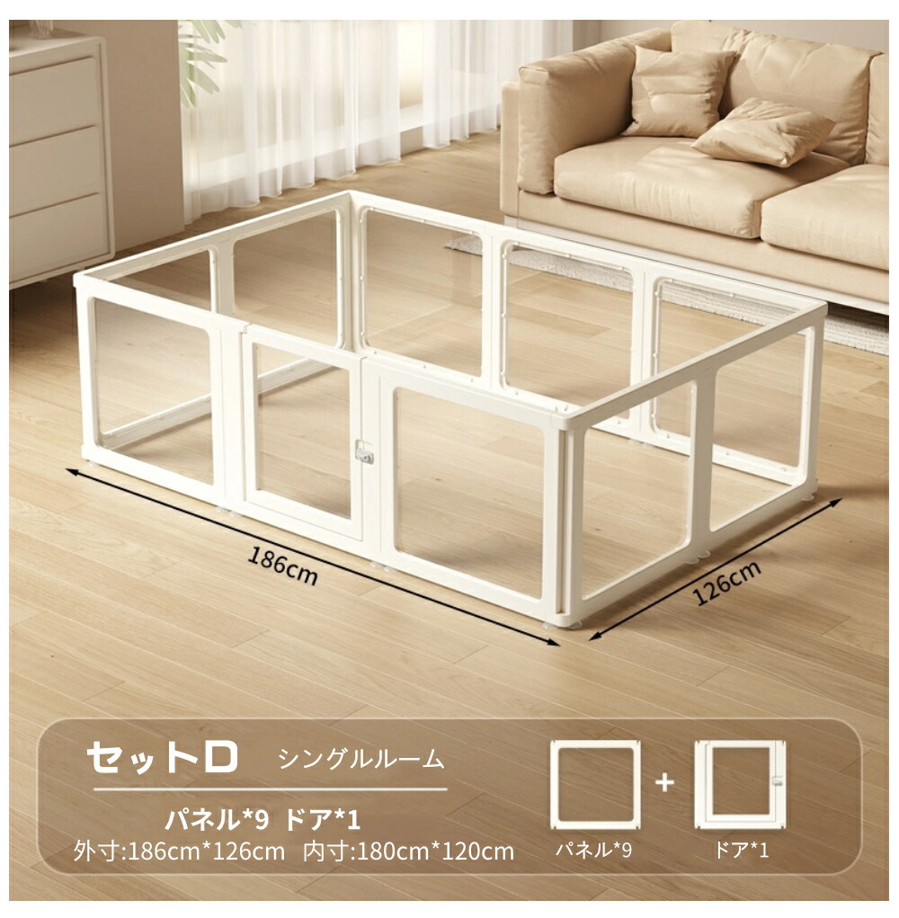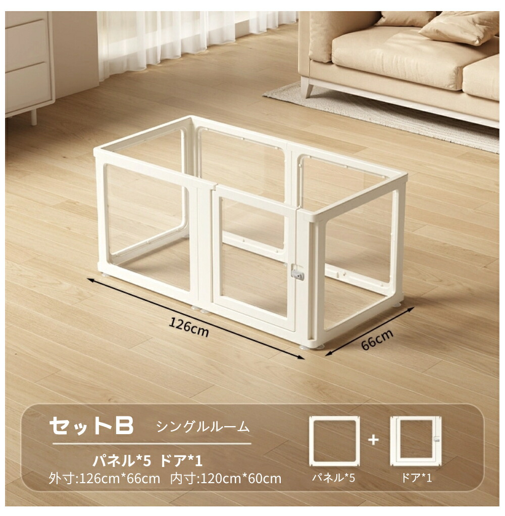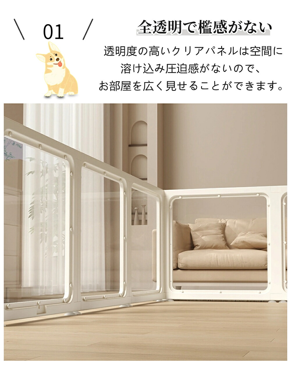・このペットサークルは、透明なアクリル素材を使用し、檻感を感じさせないデザインが特徴です。