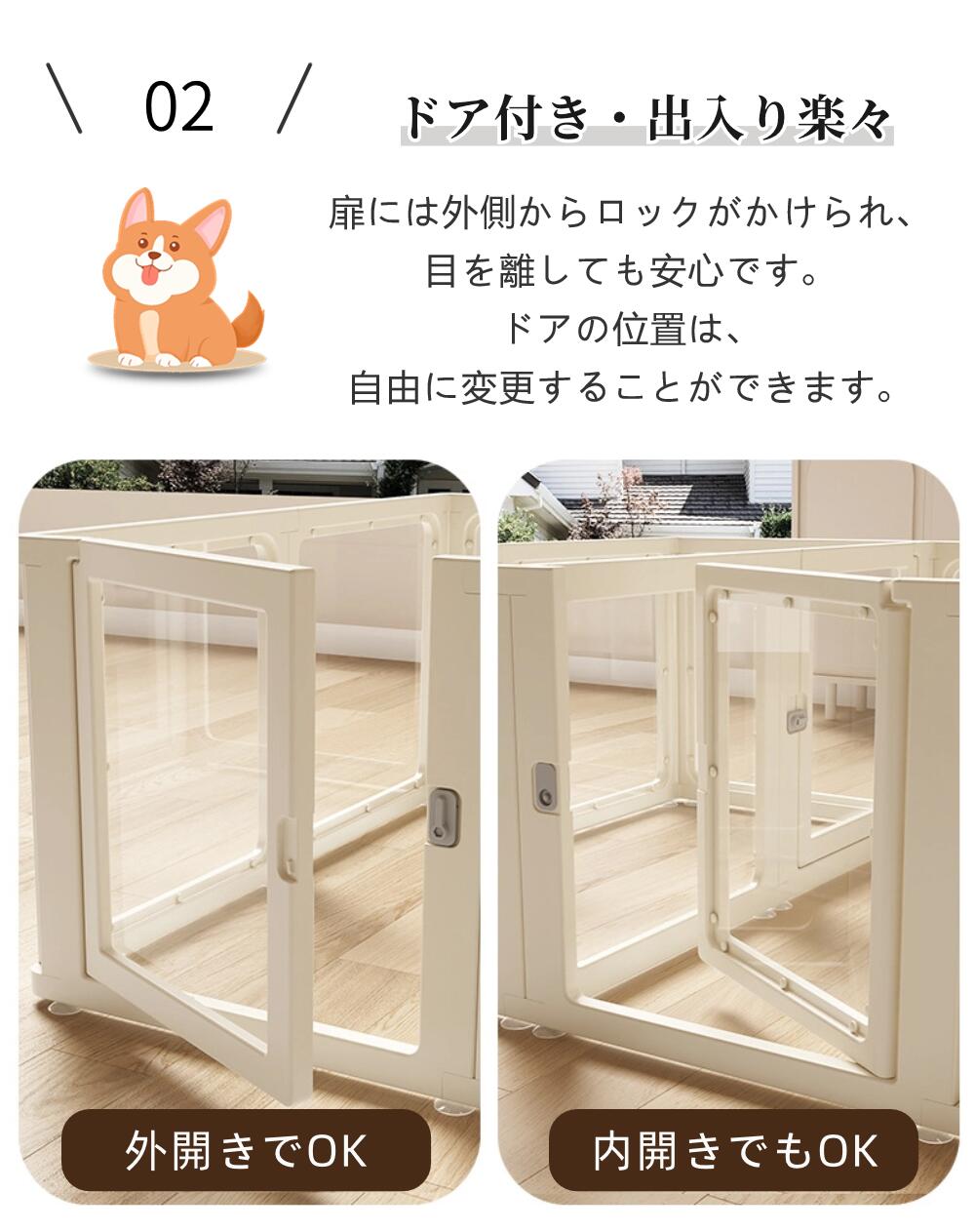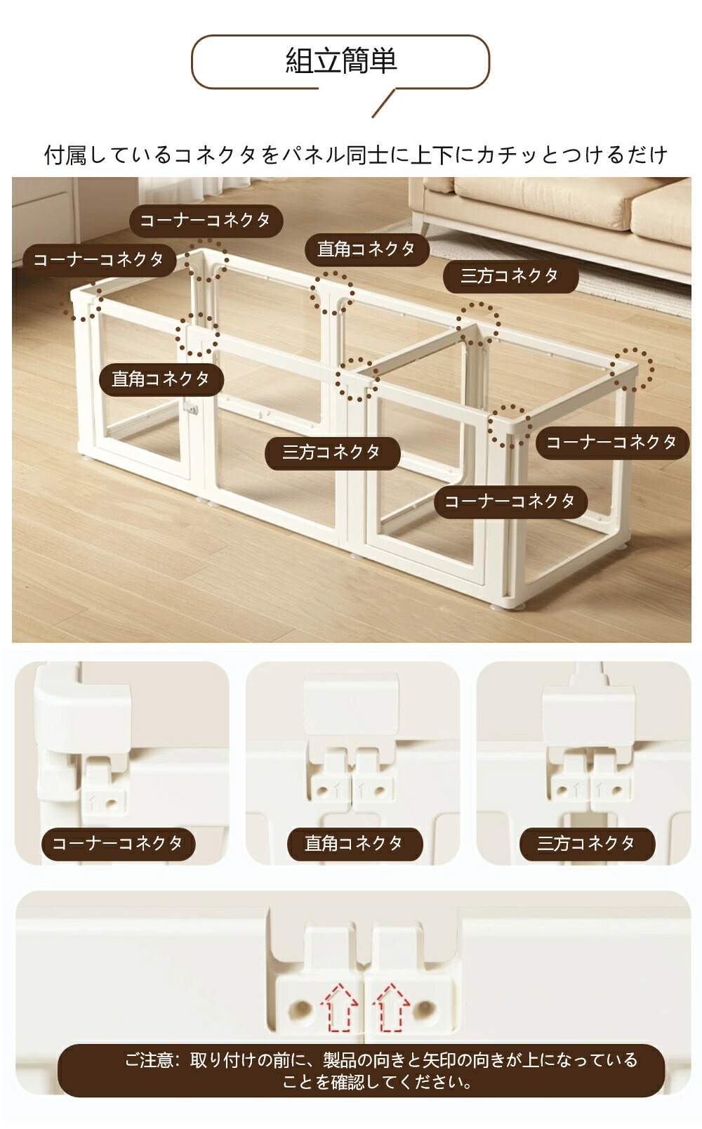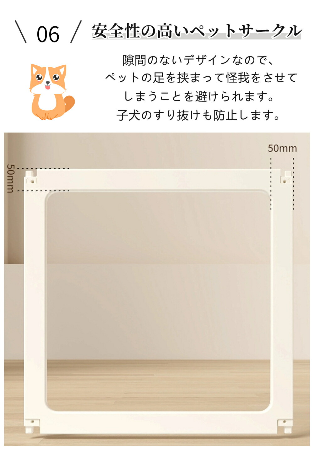 ・自由に組み合わせ可能なパネルは、小型犬から中型犬までのサイズに対応し、ペットの成長や活動量に合わせて最適な空間を作ることができます。