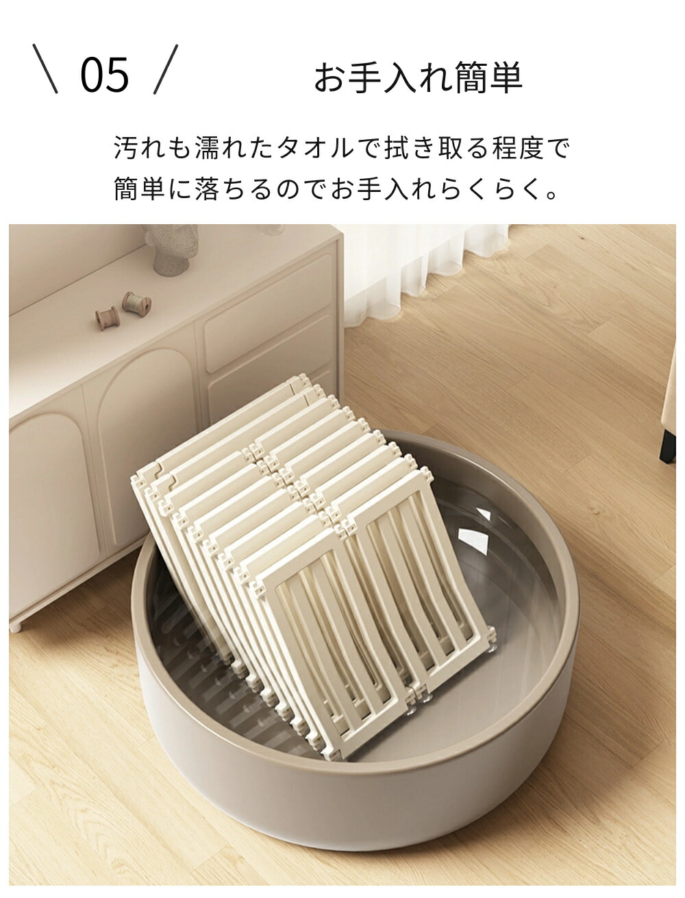 ・また、檻のような閉塞感がなく、お部屋のインテリアにも調和する洗練されたデザインが特徴です。