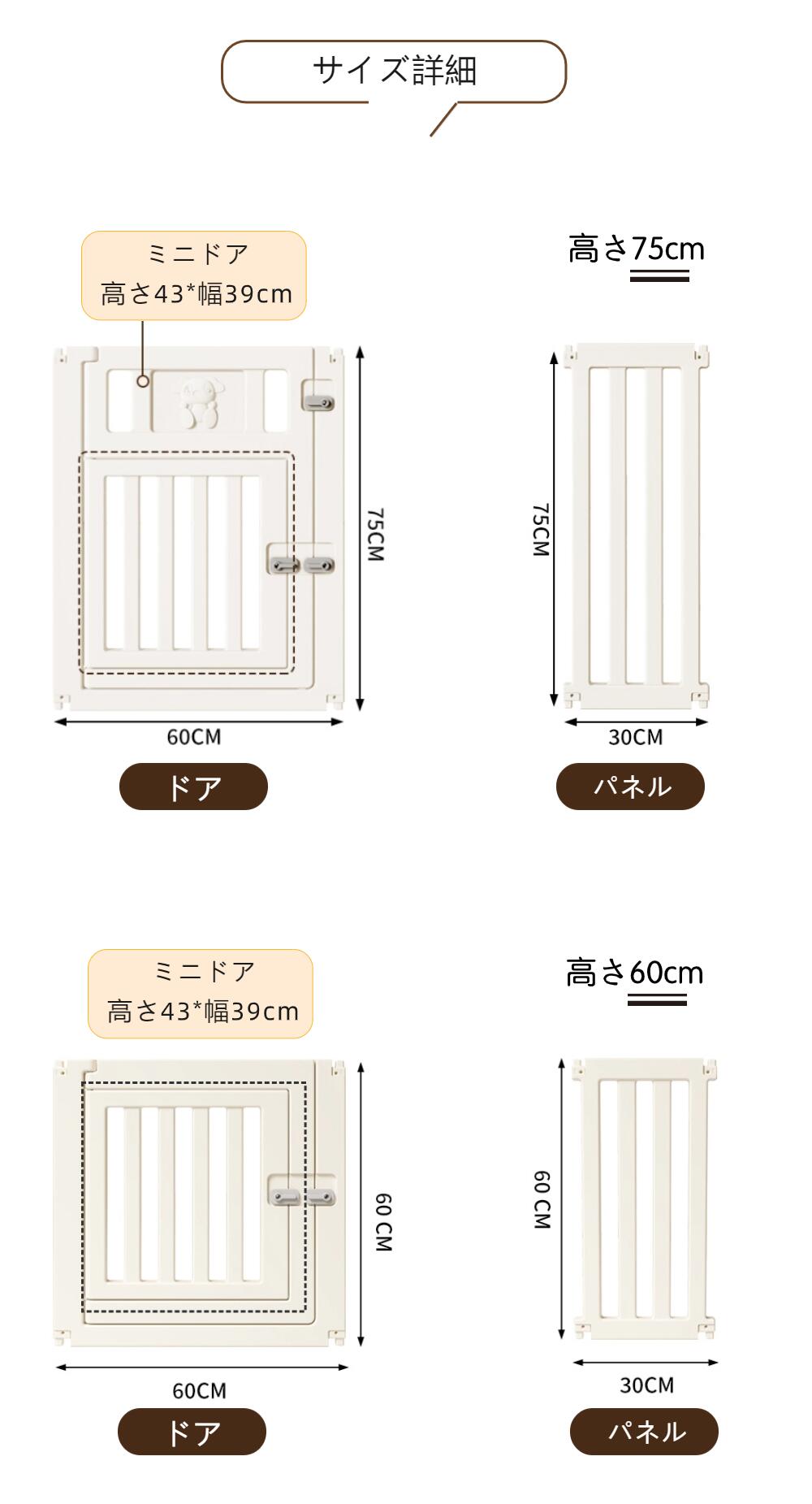 ペットサークル ドア付き 犬 サークル サークルケージ ペットケージ 檻感がない 自由に組み合わせ 犬脱走防止フェンス 高さ60cm 小型犬 中型犬用ゲージ 高密度HDPE素材 75cm