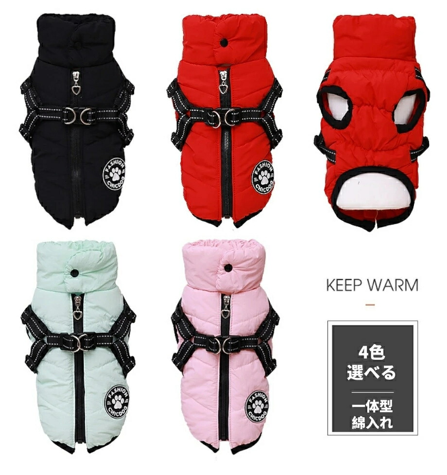 犬 服 ダウン風 ハーネス ジャケット 犬用品 ドッグウェア ベスト 続々登場 XS S M L XL XXL ピンク グリーン レッド ブラック