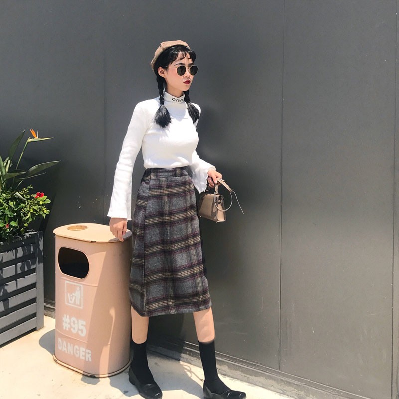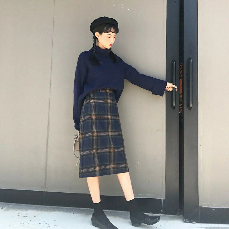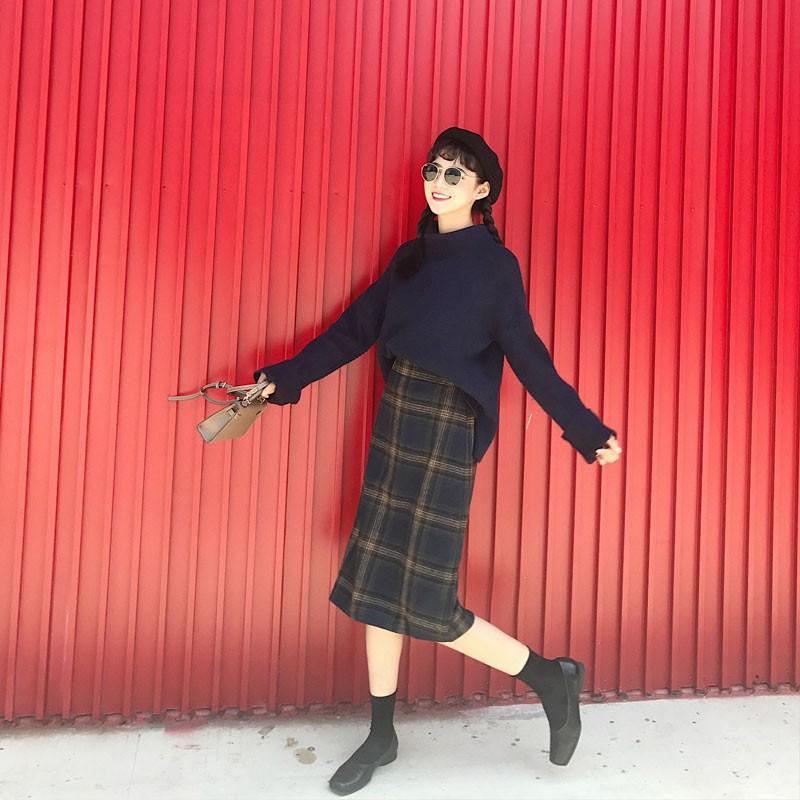 スカート 秋冬 コーデ 膝丈 チェック レディースファッション 特集 A B S M L XL 2XL