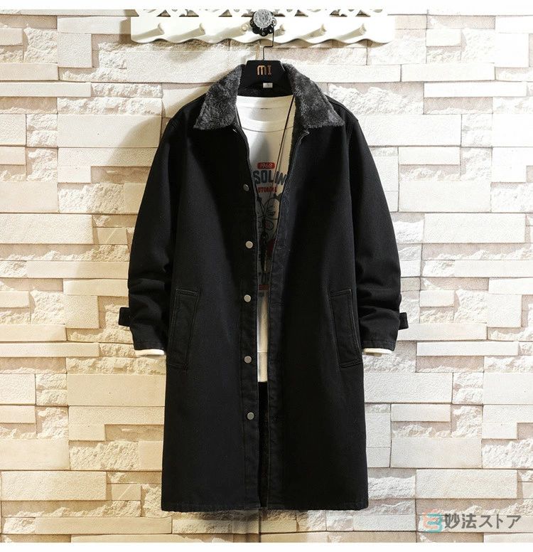 裏ボア デニム コート メンズ 暖か 裏起毛 ロングコート デニムコート あったか 防寒 ロング丈 冬服 アウター ロングジャケ 無地