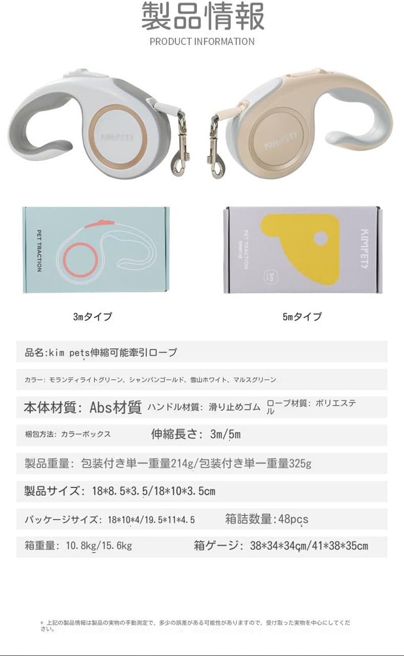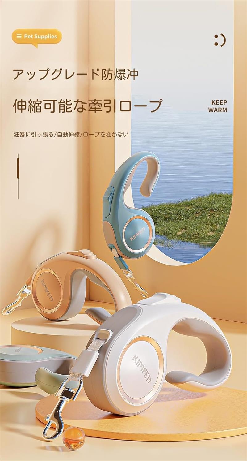 犬 リード ハーネス 伸縮リード 長さ ペット ペットグッズ 続々入荷中 ゴールド グリーン ホワイト レイクブルー 3m 5m