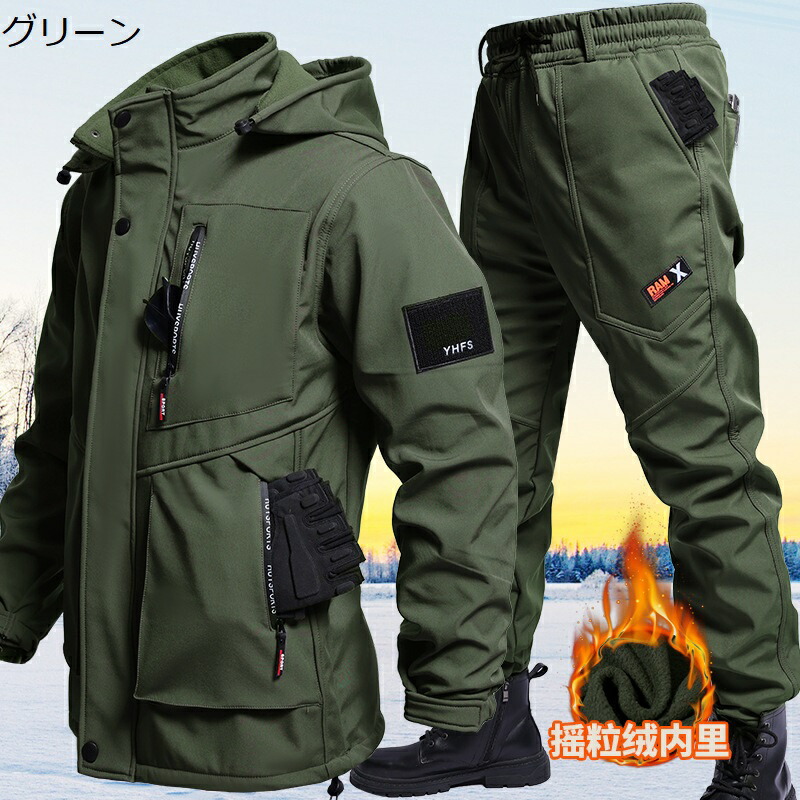 メンズ 冬用作業着セット 裏起毛 防風 コート ジャケット 早い者勝ち ブラック グリーン グレー M L XL 2XL 3XL 4XL