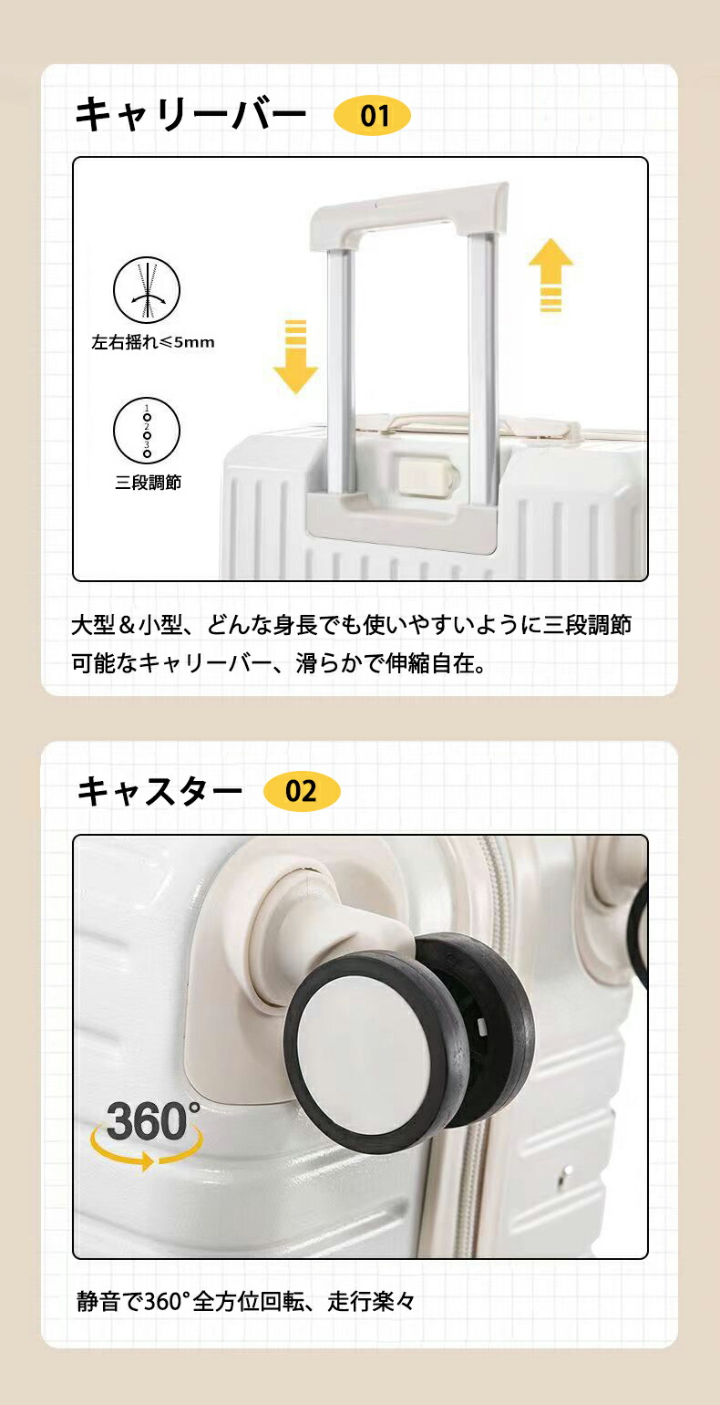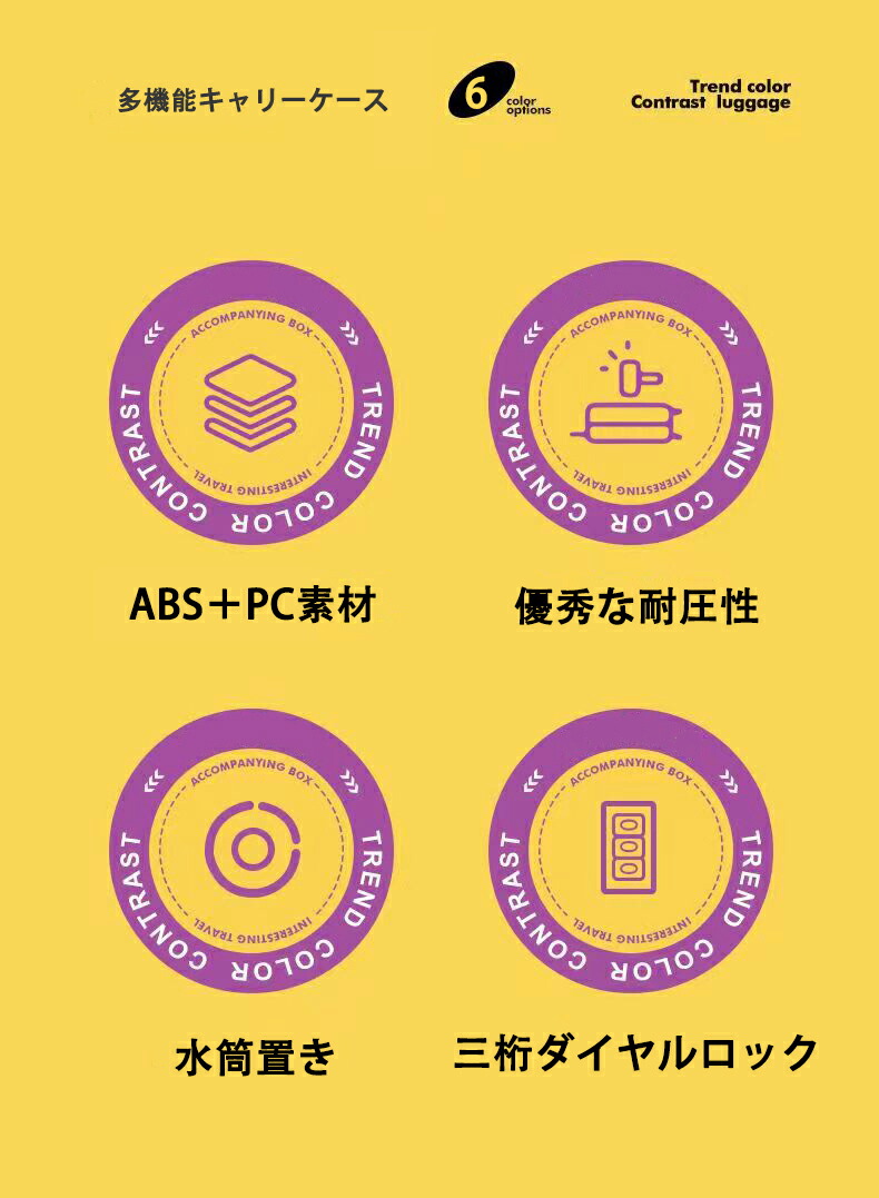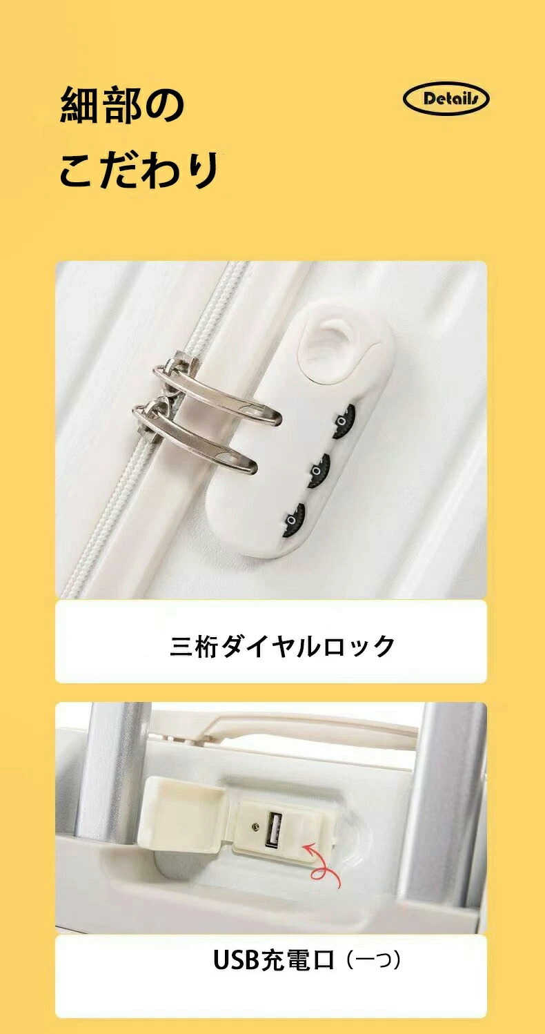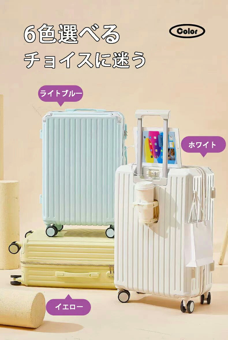 スーツケース Mサイズ usbポート付 バッグ 小物 ブランド雑貨 通販 ブラック ホワイト ピンク イエロー ライトブルー グレー+ブルー