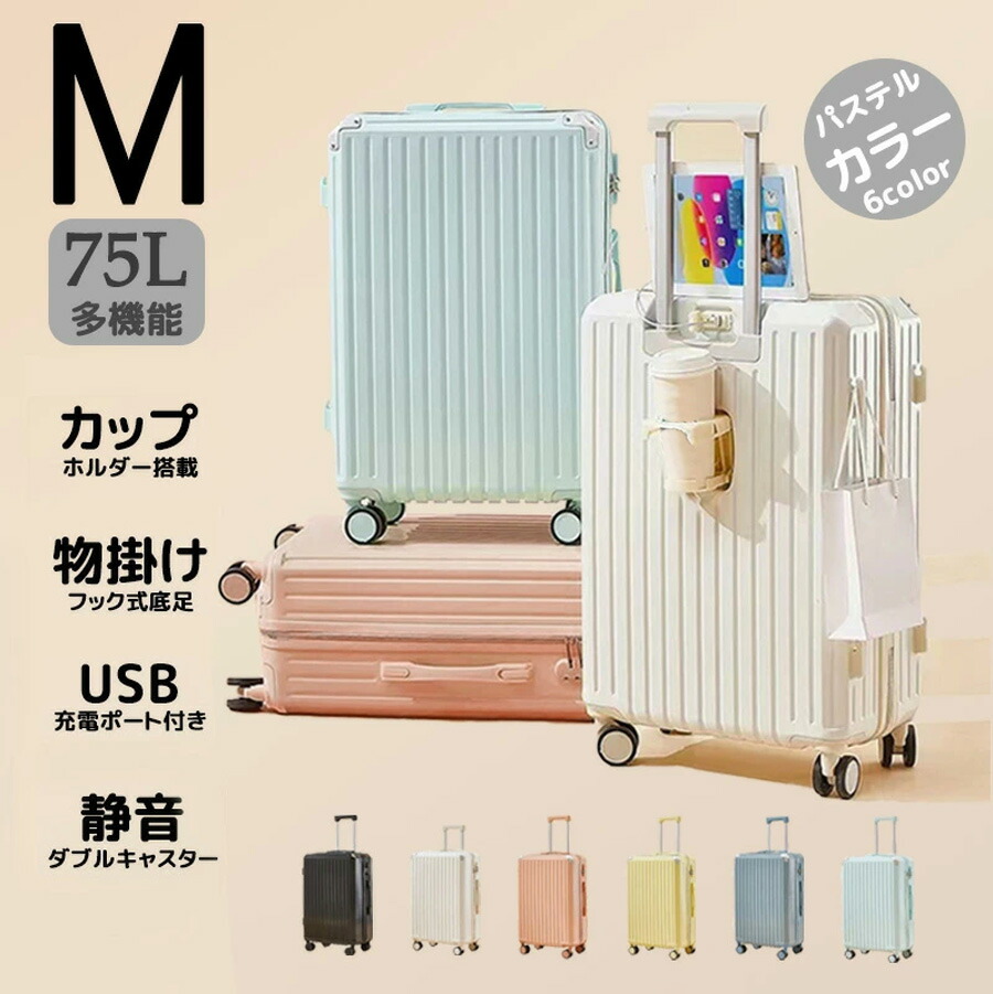 スーツケース Mサイズ usbポート付き 軽量 キャリーケース キャリーバッグ おしゃれ 静音 可愛い パステルカラー ダブルキャスター 大容量 60リットル ビジネス 国内旅行 4泊 5 出張
