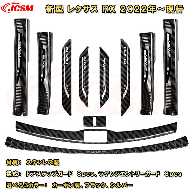 新型レクサス RX 5代目 ラゲッジエ カーボン調 ブラック シルバー 内側&外側 全8pcs 内側 4pcs 外側 4pcs リア 3pcs 全セット 11pcs