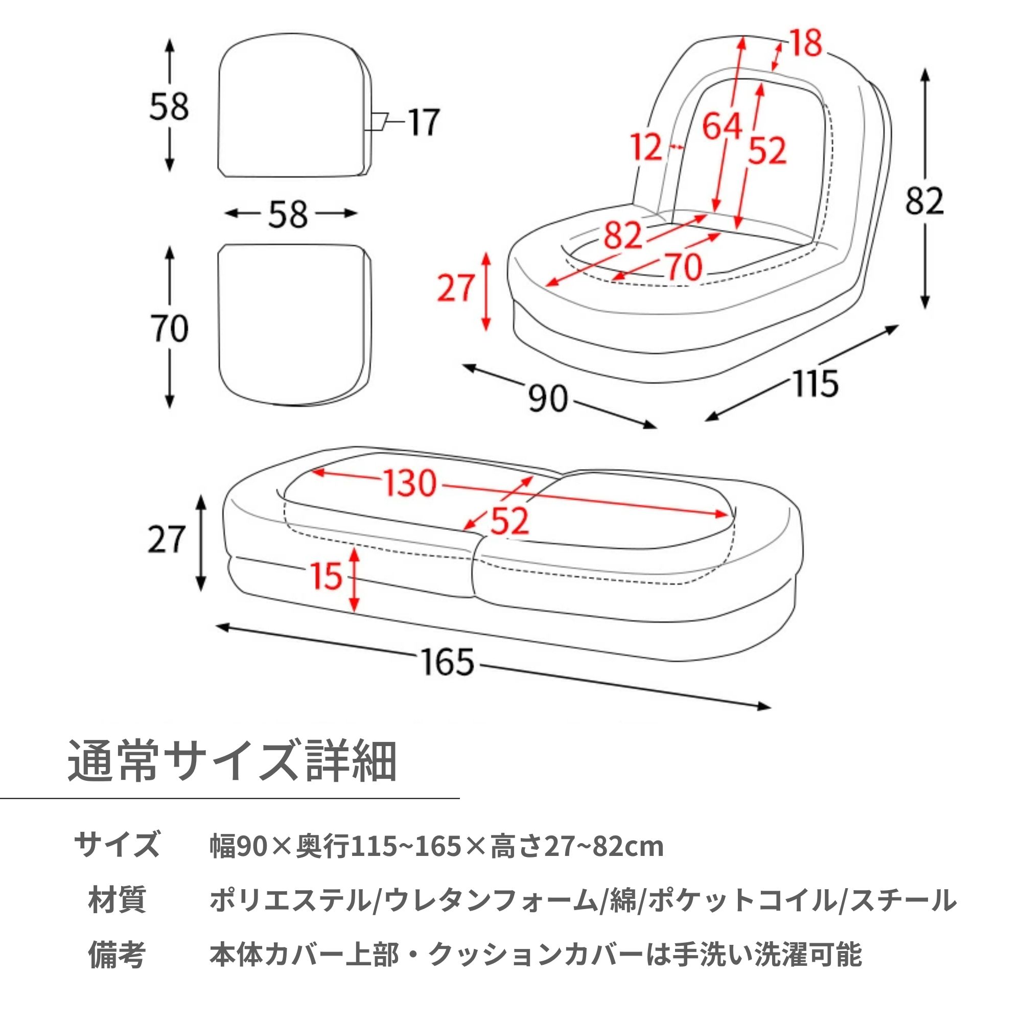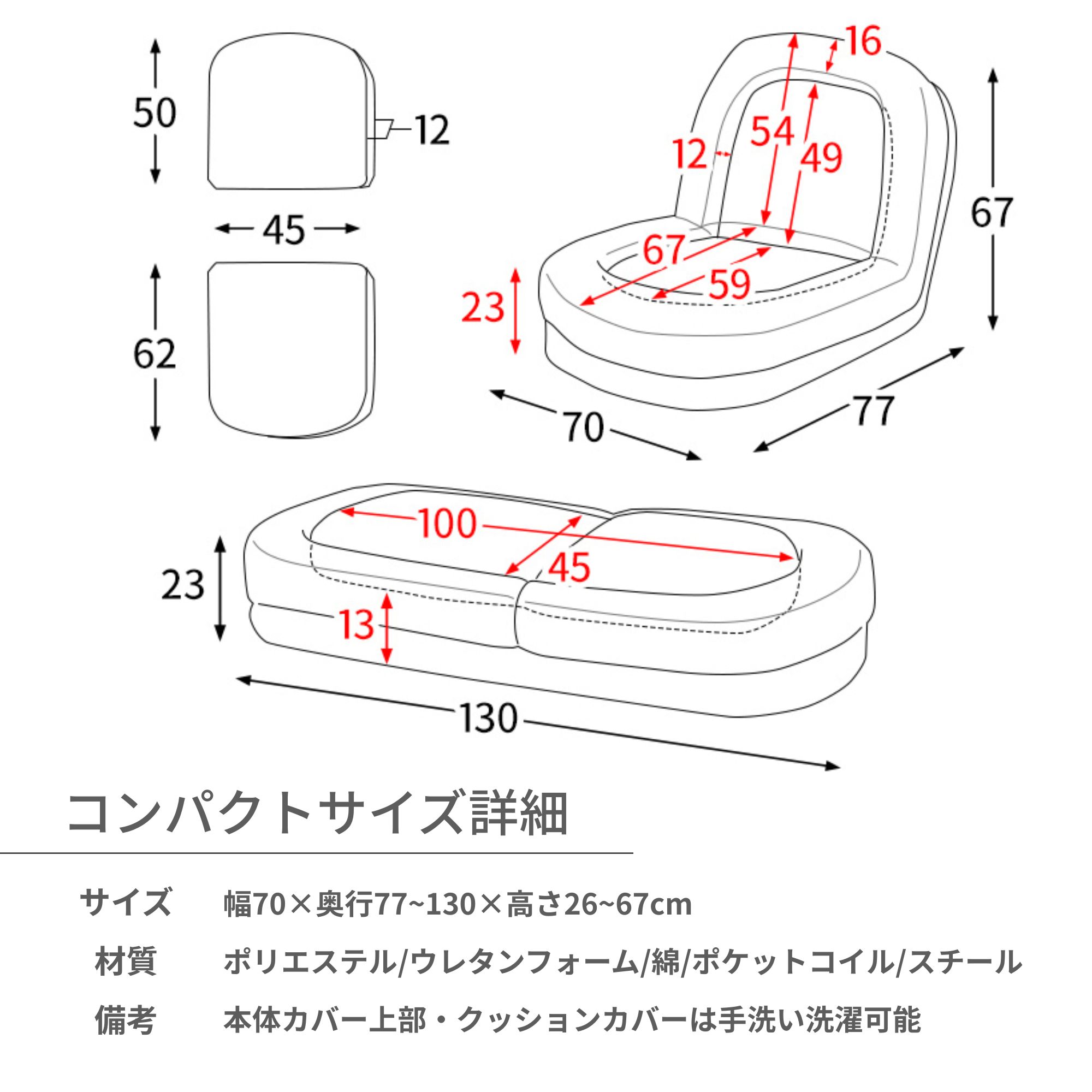 ふわとろソファベッド Foure フー コンパクトサイズ(70×130cm) 通常サイズ(90×165cm) ふわとろ生地(SF-1650) ブークレ生地(SF-1700B) ストライプ生地(SF-1800) ふわとろ生地(SF-1300) ストライプ生地(SF-1400C)