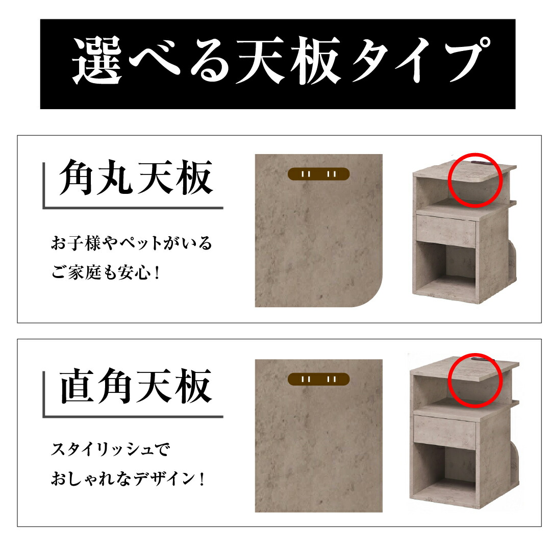 背面収納付 サイドテーブル ベッド横 角丸 直角 ホワイト WH ダークブラウン DBR コンクリート CON ブラウン BR ナチュラル NA グレー GY クラシックダークブラウン CDBR セラミックブラック CBK マーブルホワイト MWH