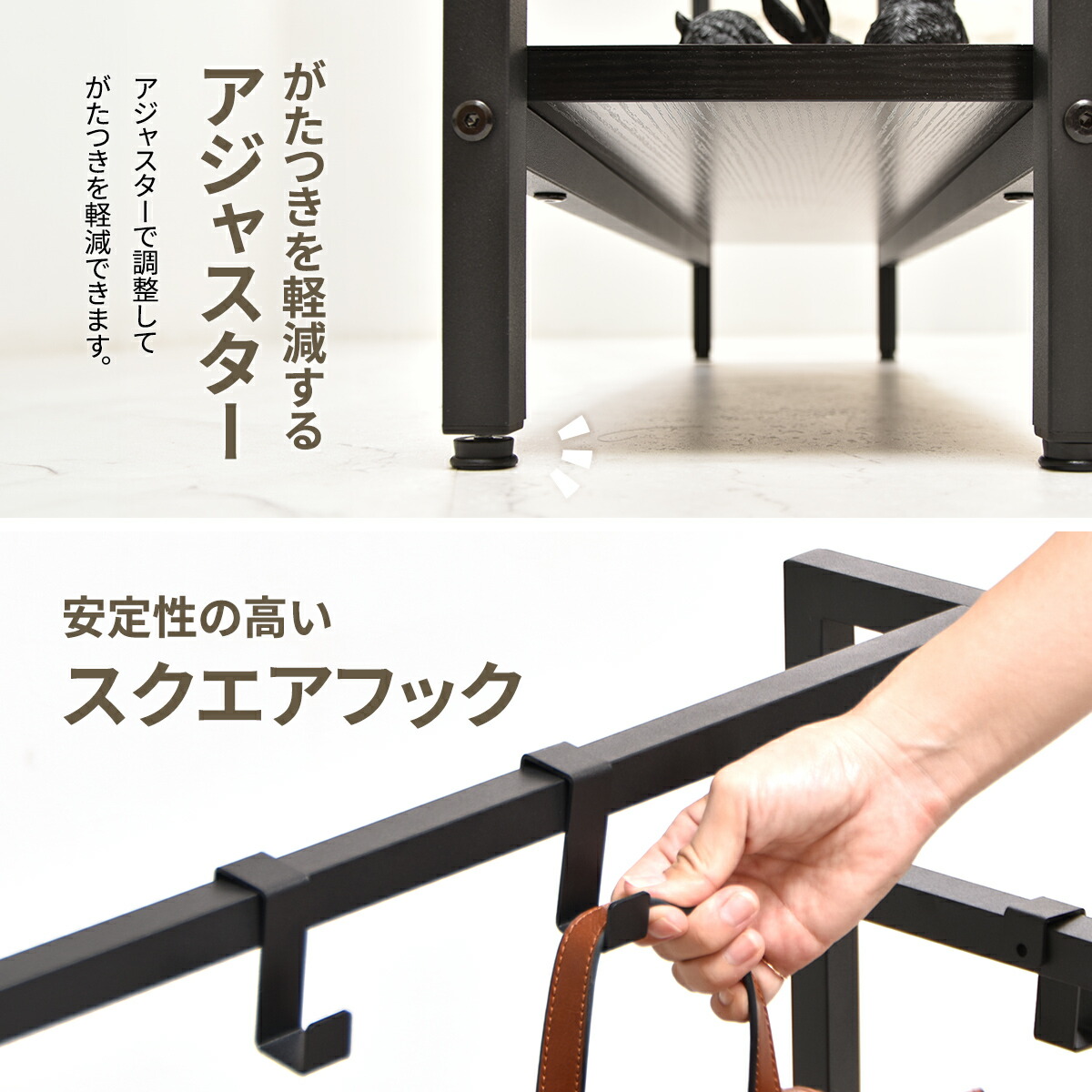玄関、リビングにも置きやすい、スリムなフック付きマルチ収納ラック。