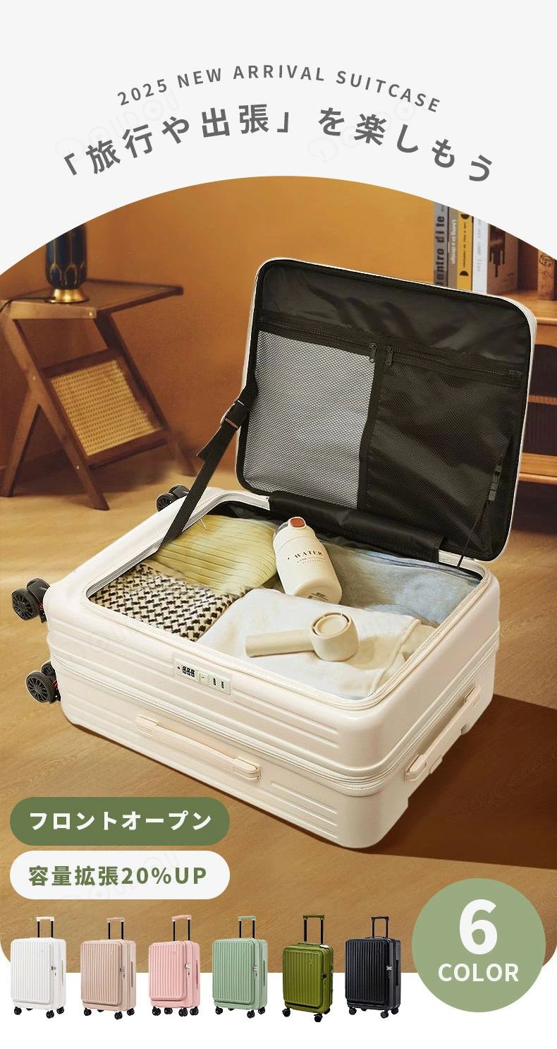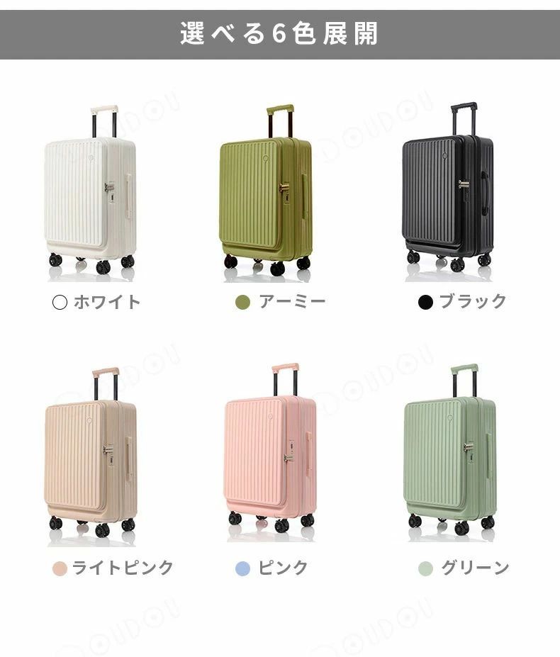 スーツケース キャリーケース 片開き ハード 拡張機能付き フロントオープン 大容量 超軽量 ファスナータイプ カップホル 機内持ち込み