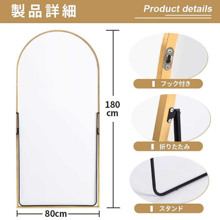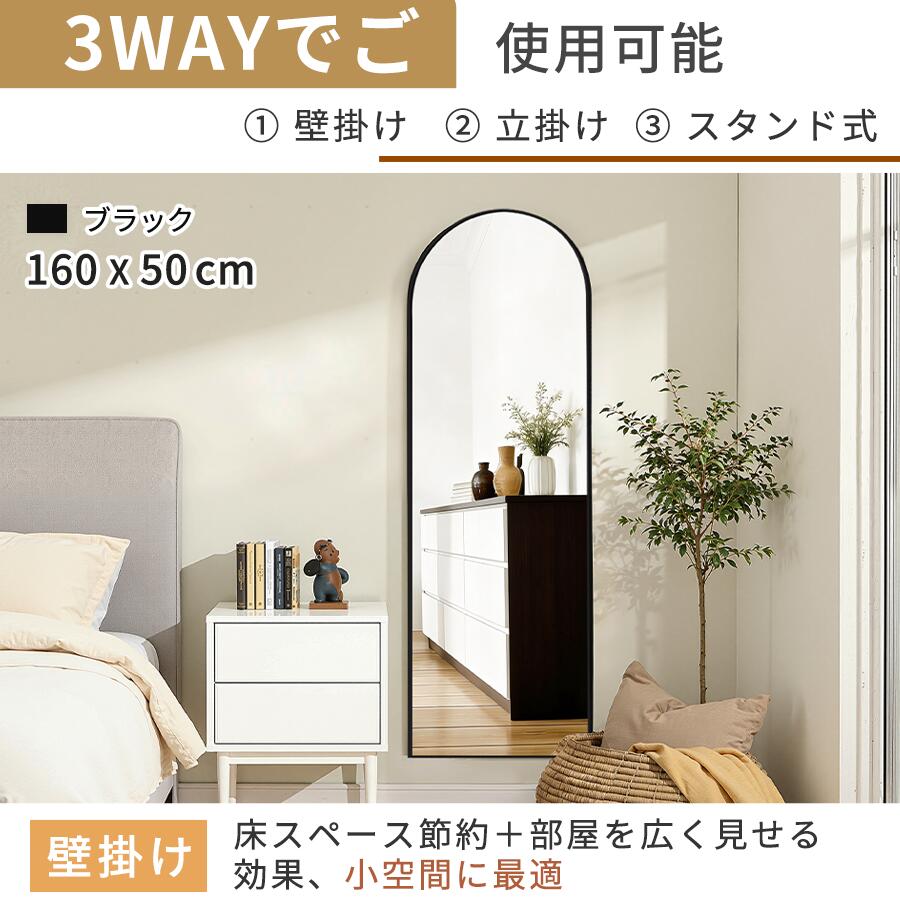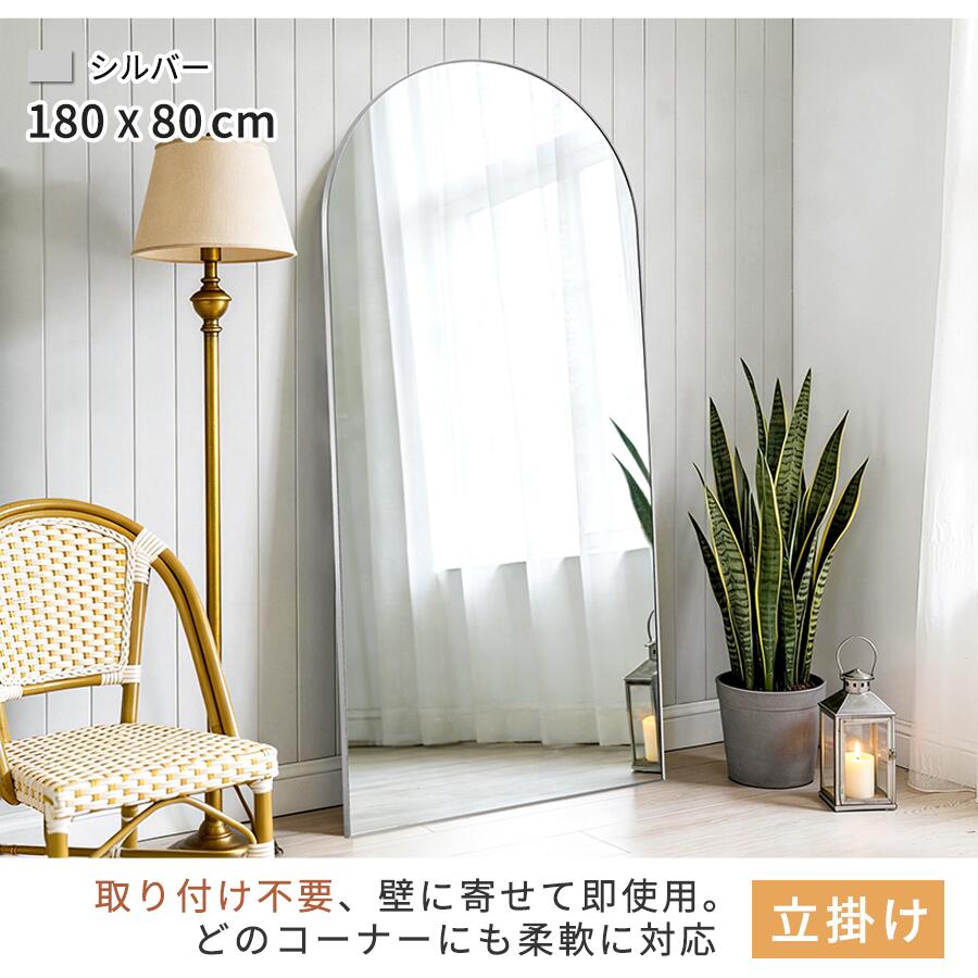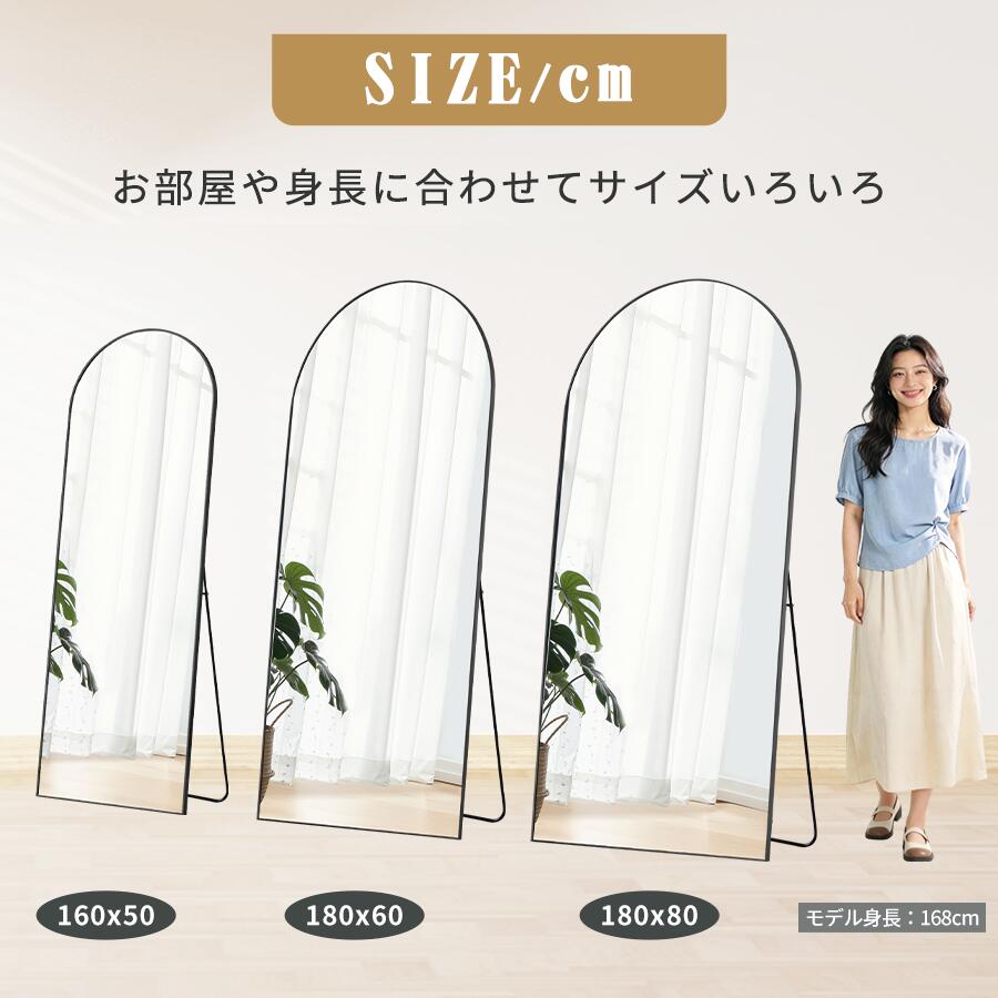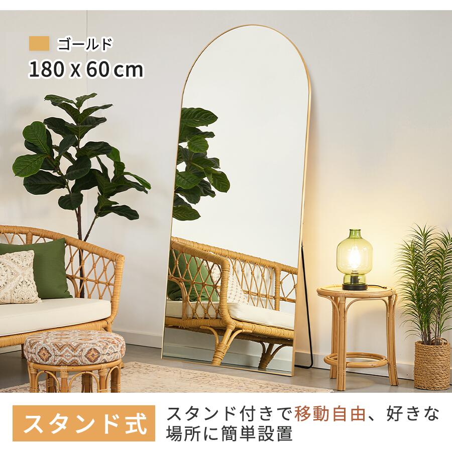 全身鏡 鏡 姿見 アーチミラー スタン 50x160 60x180 80x180 ブラック ゴールド シルバー