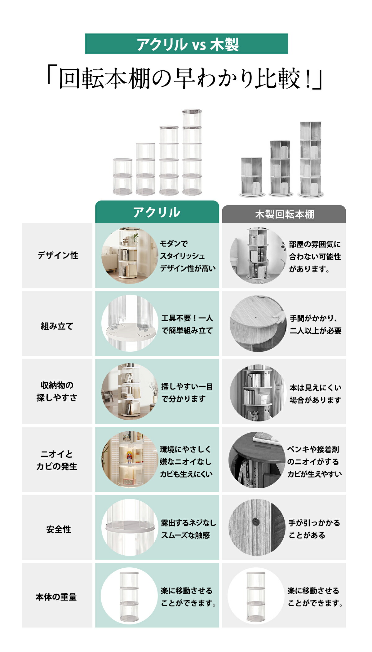 360°回転アクリル本棚