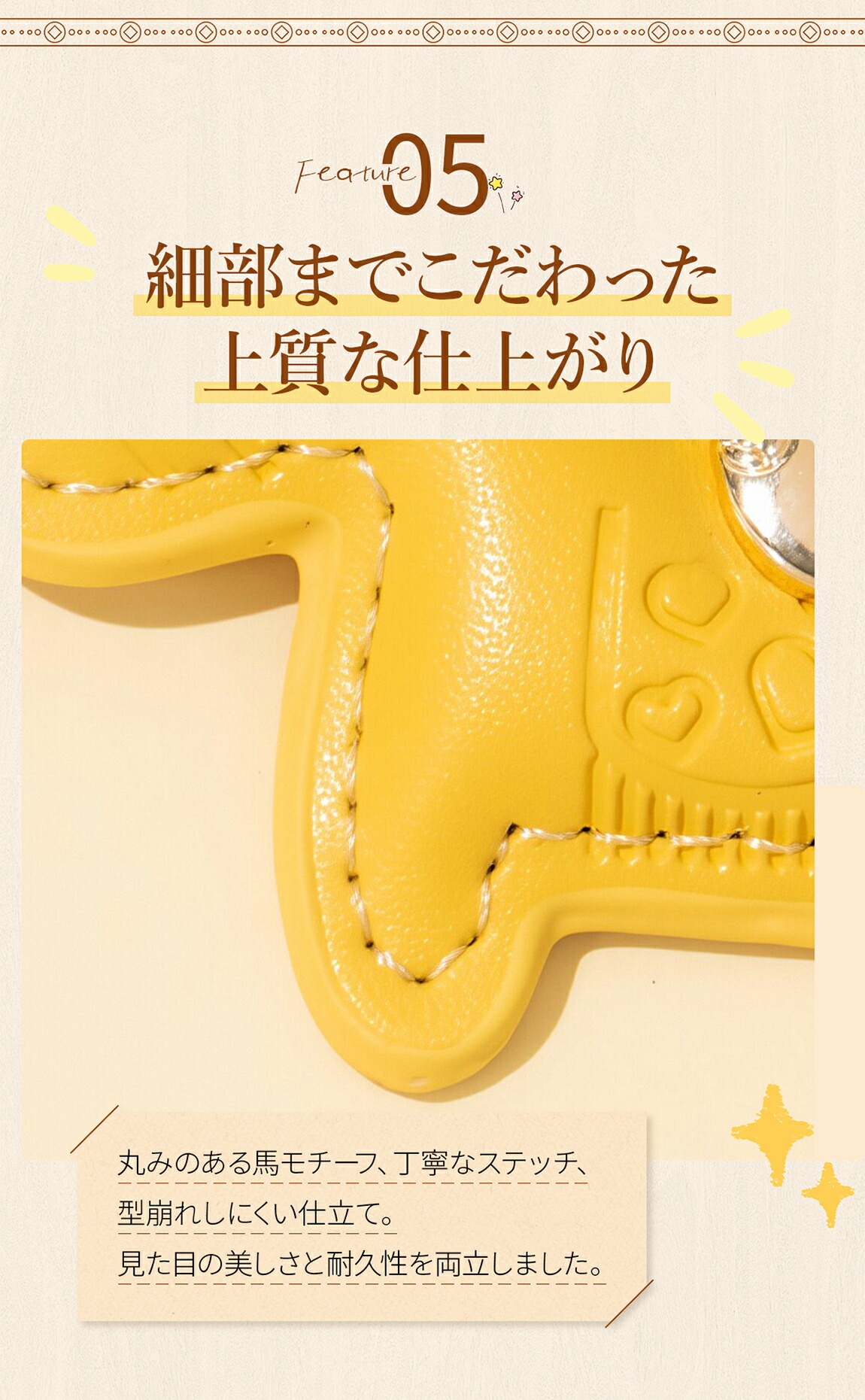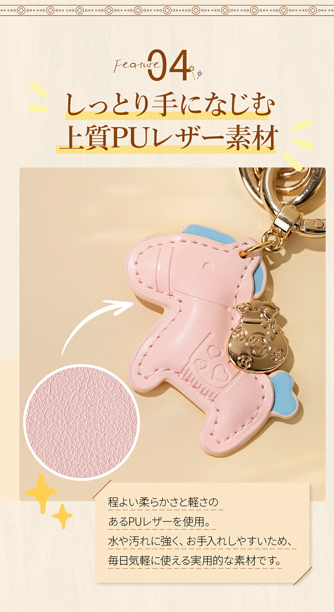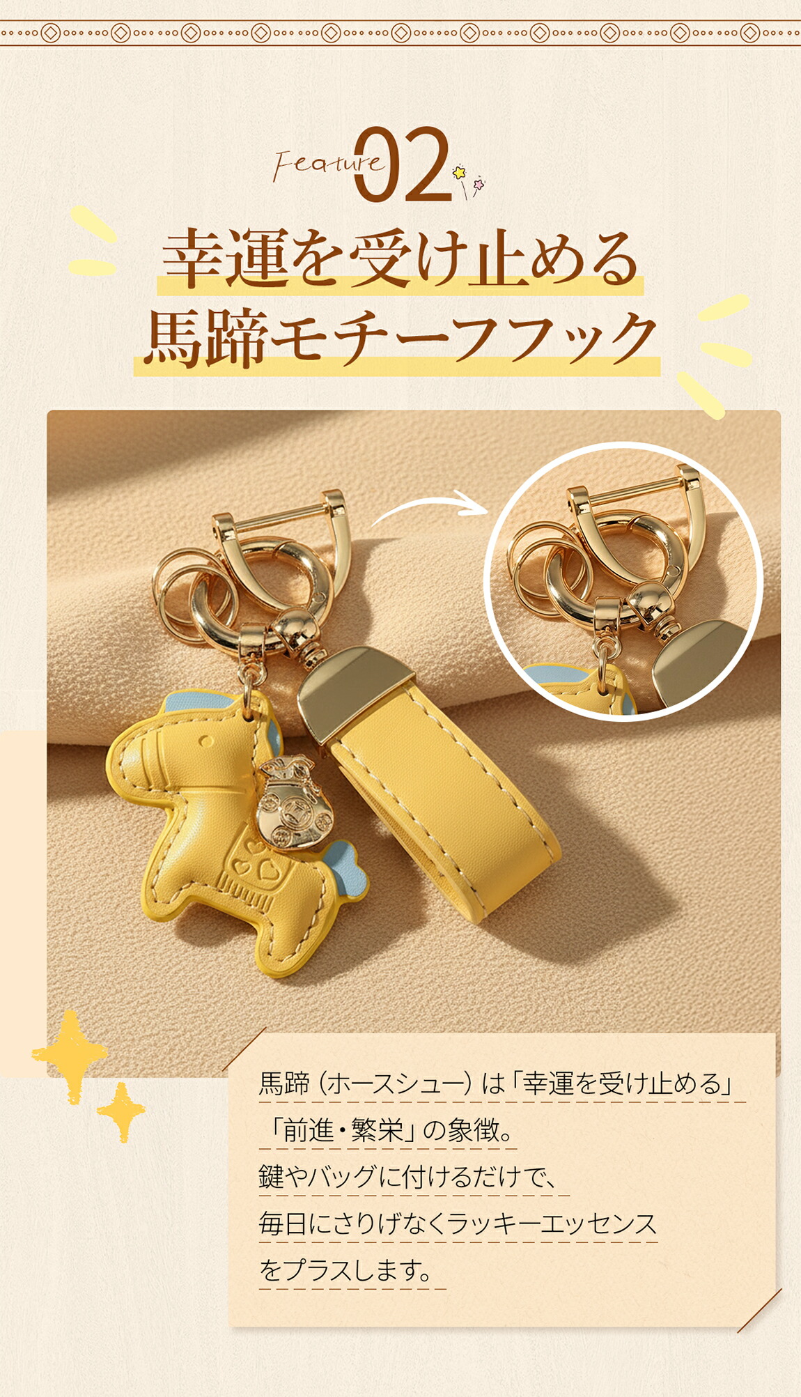 「馬(うま)」にちなんだ縁起の良いモチーフを取り入れた、毎日持ち歩ける開運キーホルダーです。