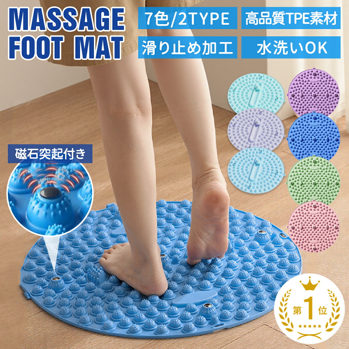 ・足ツボマット:ブルー、ピンク、グリーン、パープル