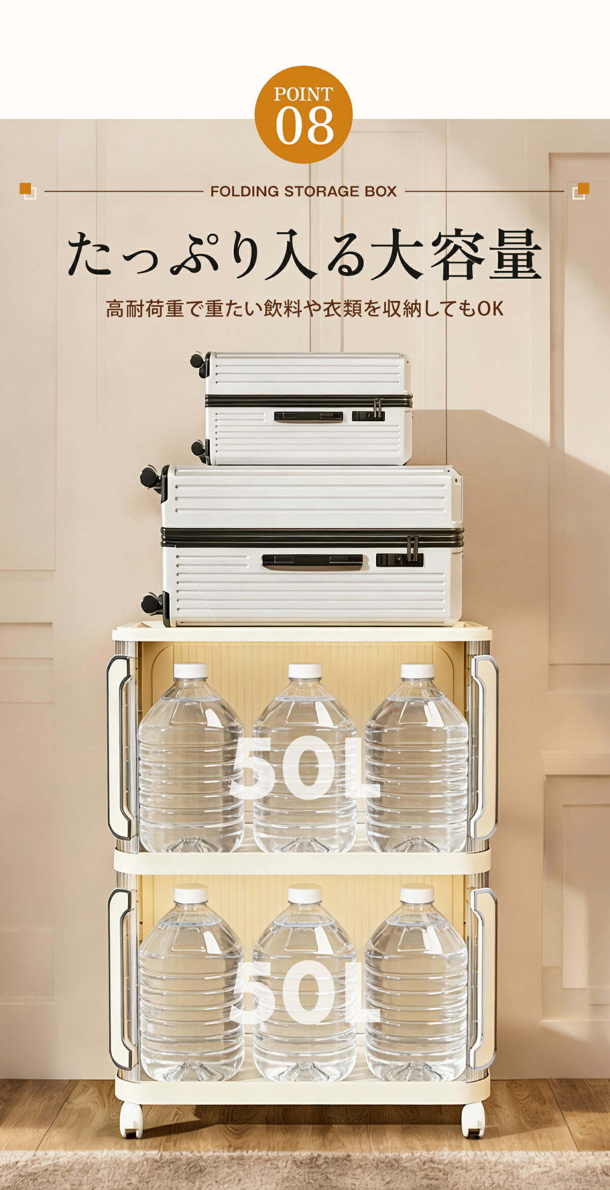 収納ボックス 収納ケース キャビネット コンテナ 折りたたみ 折り畳み スタッキング 積み重ね 衣装ケース 衣類収納 おもちゃ箱 蓋付き フタ付き 前開き 扉付き 横開き 観音開き スライドドア キャスター付き 大容量 50L おしゃれ 白 ホワイト クリア 透明 ブラウン 北欧 シンプル モダン キッチン リビング 洗面所 クローゼット パントリー 隙間収納 2段 3段 4段 5段 プラスチック 組み立て簡単