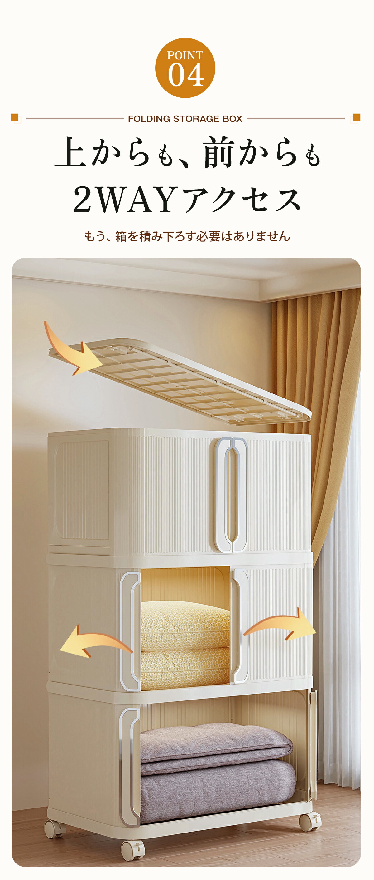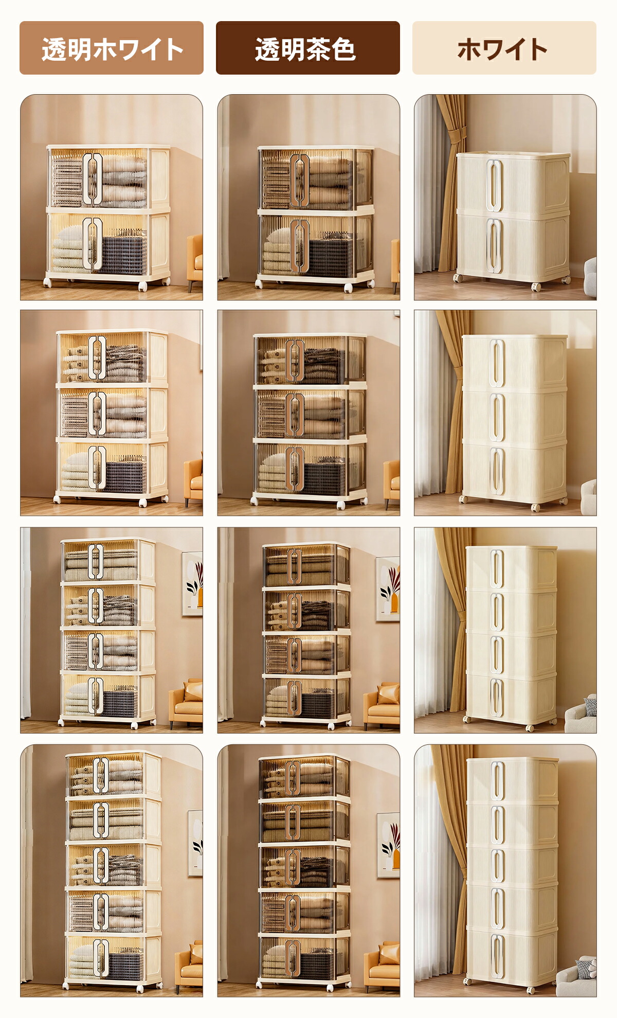 収納ボックス キャスター付き 前開き フタ付き おしゃれ 折りたたみ 大容量 コンテナ スタッキング キャビネット 衣装ケース 衣類収納 おもちゃ箱 蓋付き 透明 ホワイト 扉付き 横開き クリア