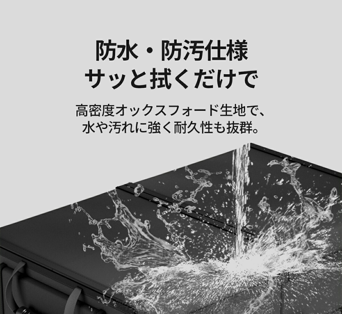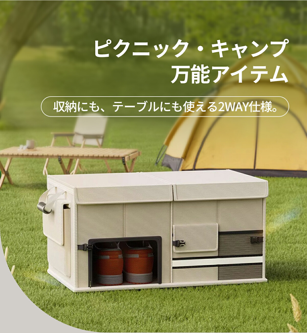 厚手PPボード内蔵でしっかり自立。収納ボックスとしても簡易テーブルとしても使える2WAY仕様。