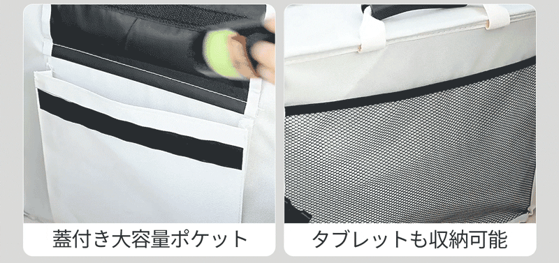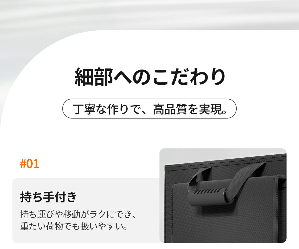 車載用としてはもちろん、家庭収納・アウトドア・ピクニックにも活躍。両側取っ手付きで、荷物を入れたままラクに持ち運べます。