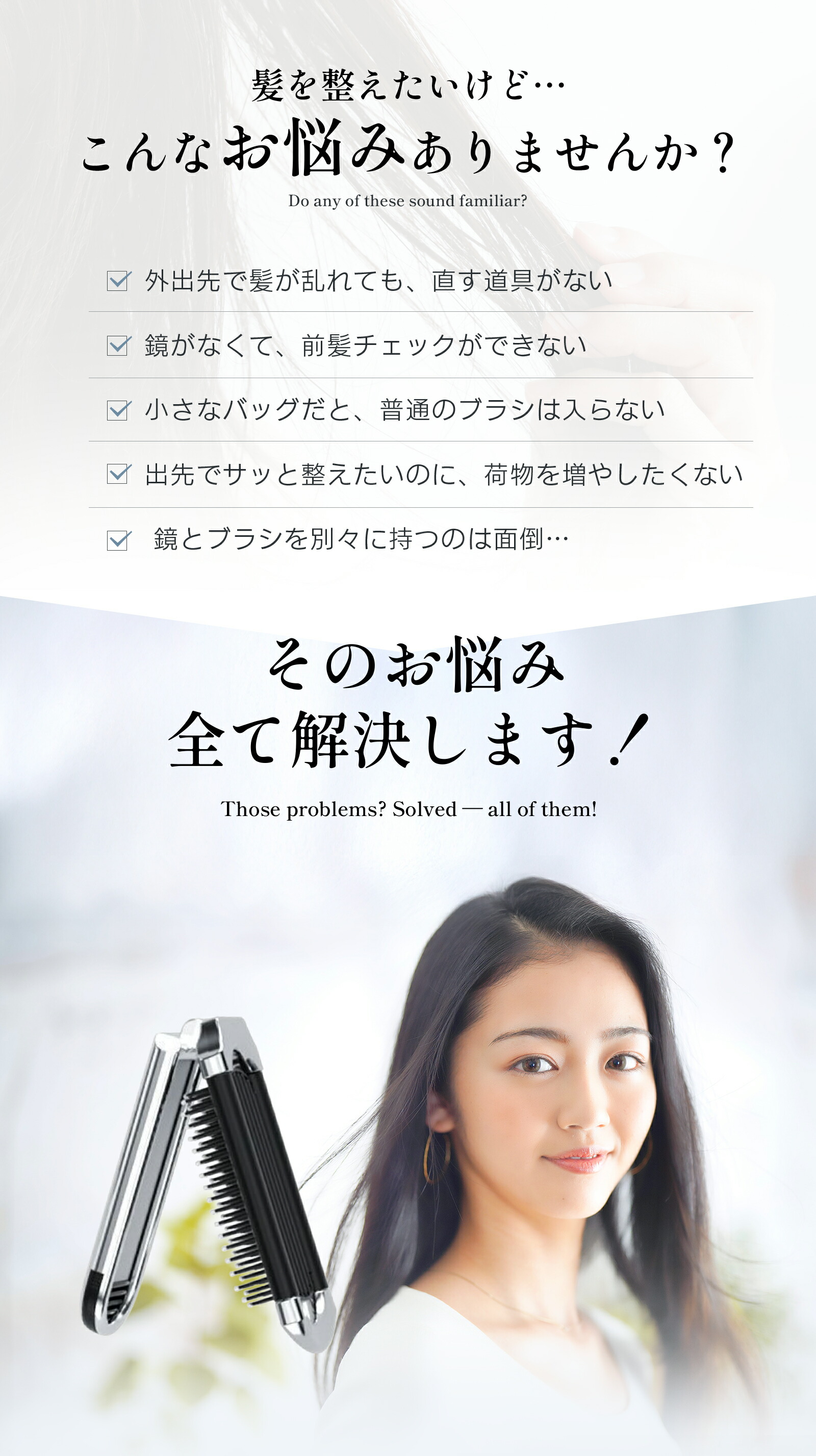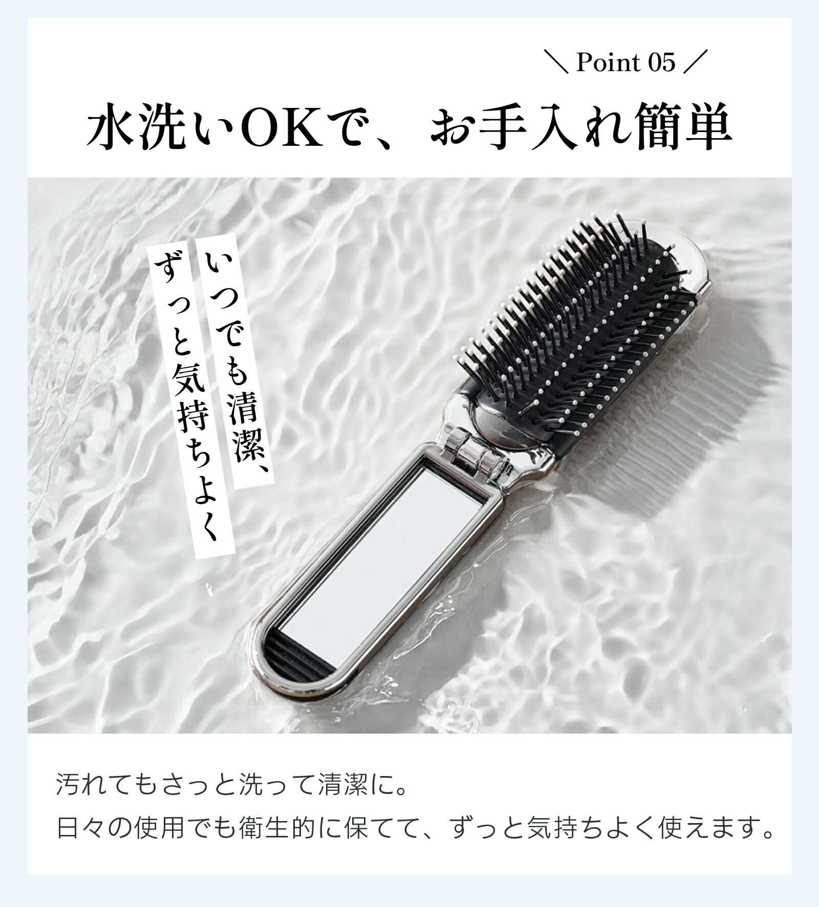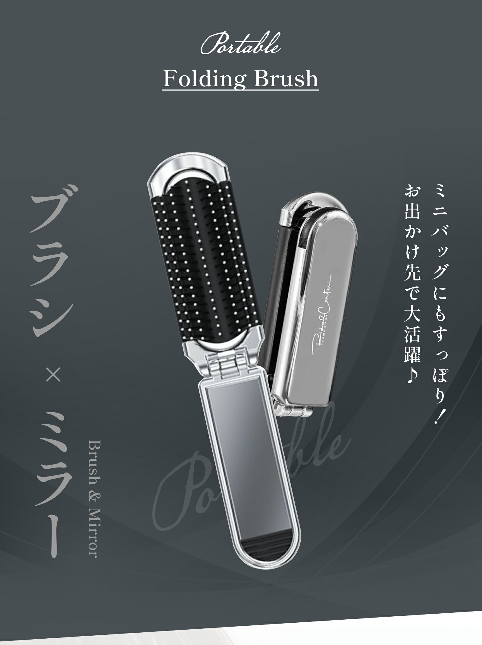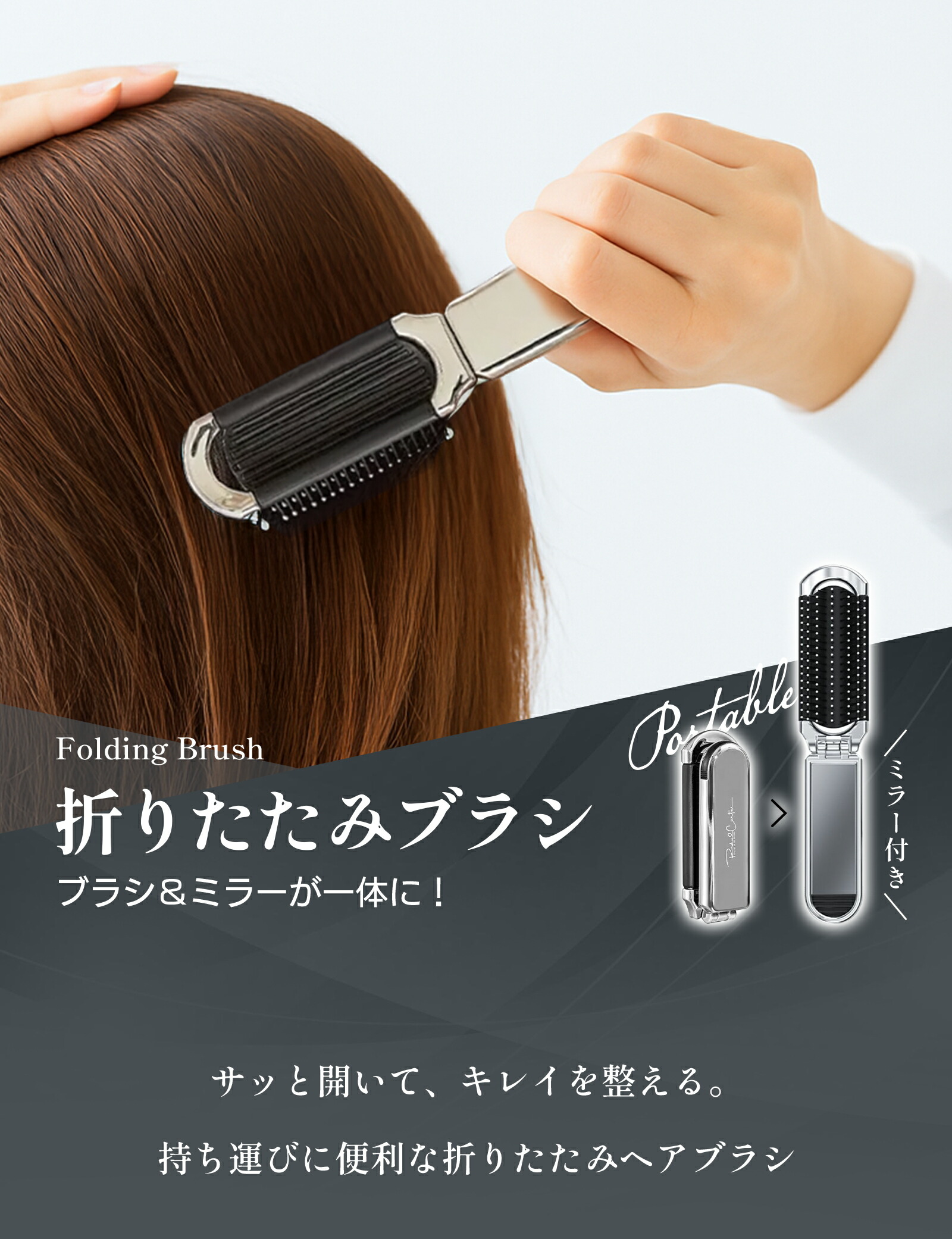 ミラー付き折りたたみヘアブラシをご紹介します。