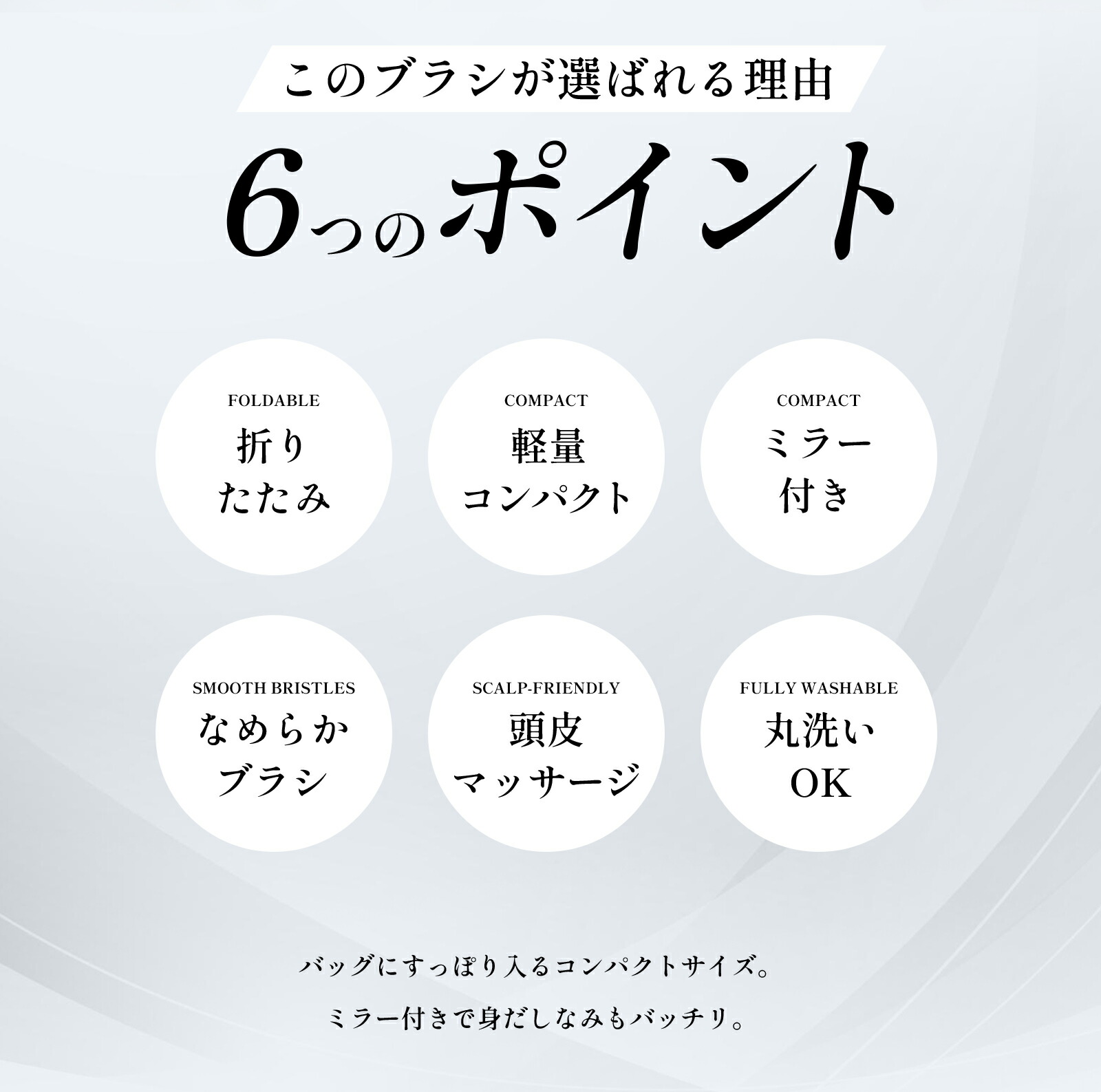 取り外し可能なミラーもついててとても便利!さらに、ブラシの毛先が球体になっており、頭皮へもやさしくアプローチ。