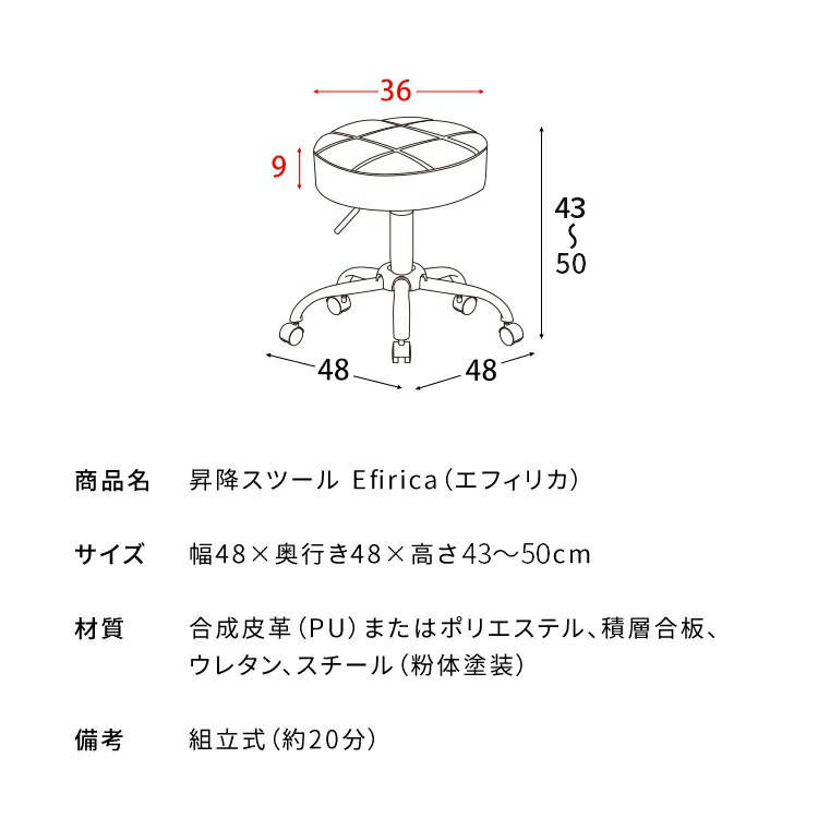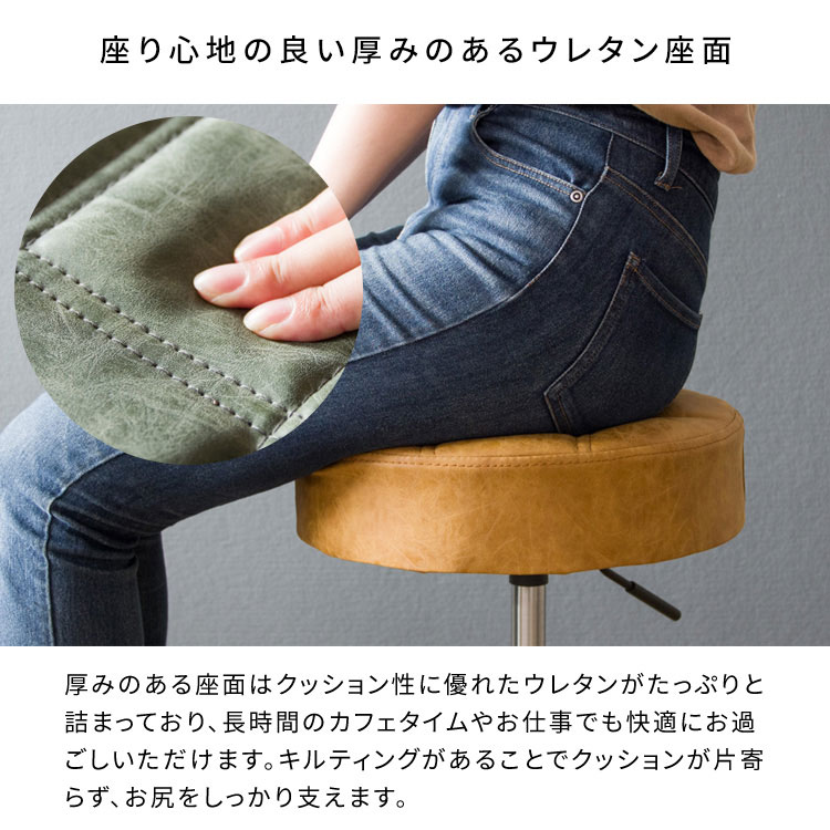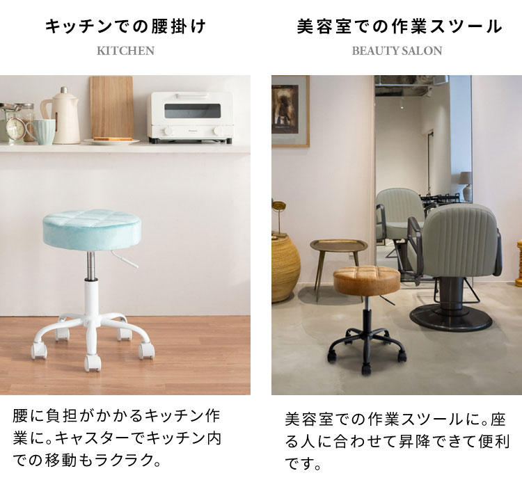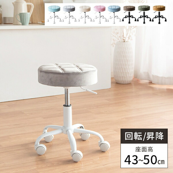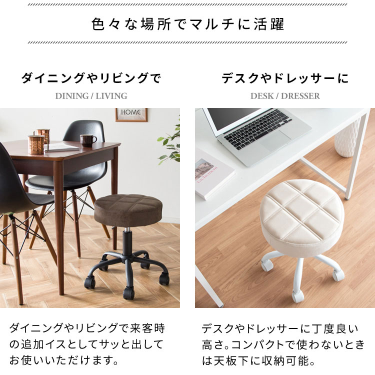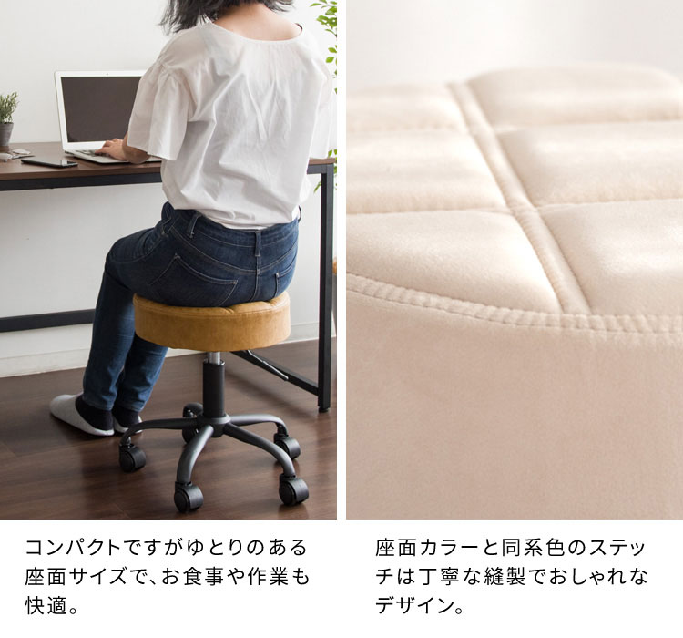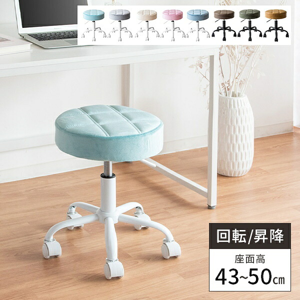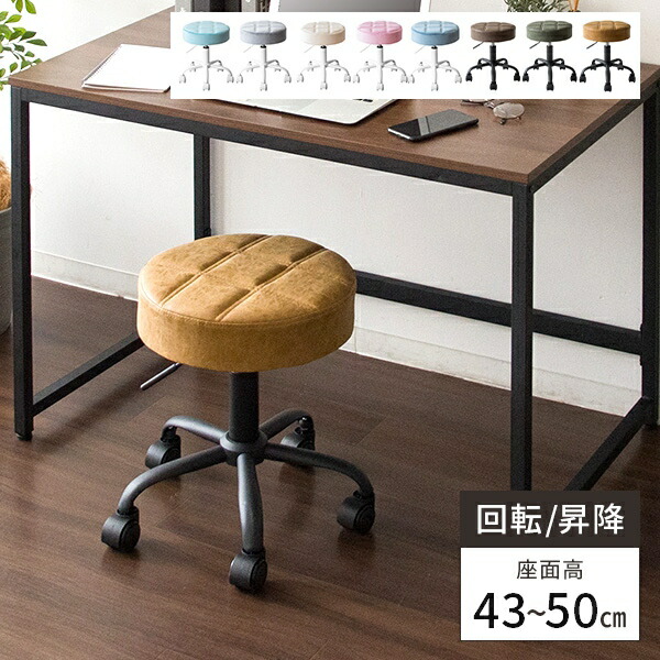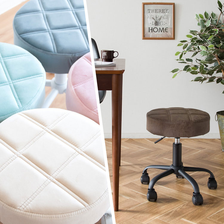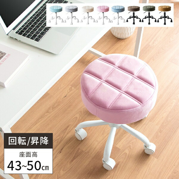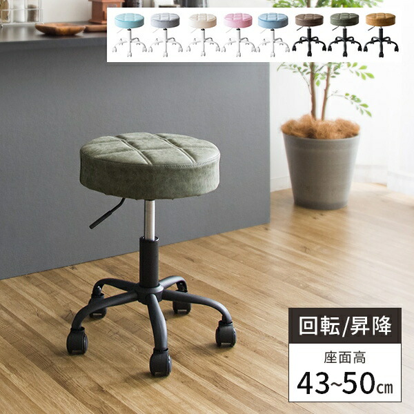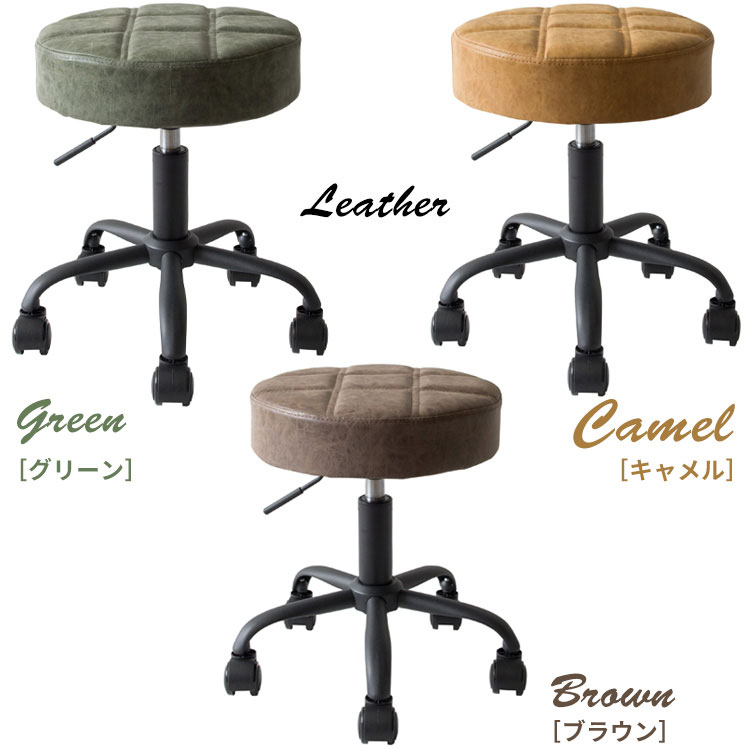 丸椅子 スツール 椅子 キャスター付き キャメル色 グリーン色 ブラウン色 アイボリー色 ライトグレー色 ライトピンク色 アクアブルー色