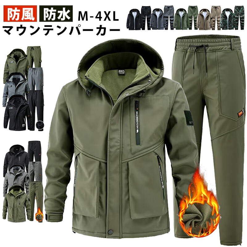 撥水 マウンテンパーカー 上下セット コート ジャケット 続々入荷中 ブラック(秋冬) グレー(秋冬 アーミー(秋冬) ブラック2(秋冬) グレー2(秋冬) アーミー2(秋冬) ブラック(春秋) グレー(春秋) アーミー(春秋) カーキ(春秋) 迷彩(春秋) M L XL 2XL 3XL 4XL