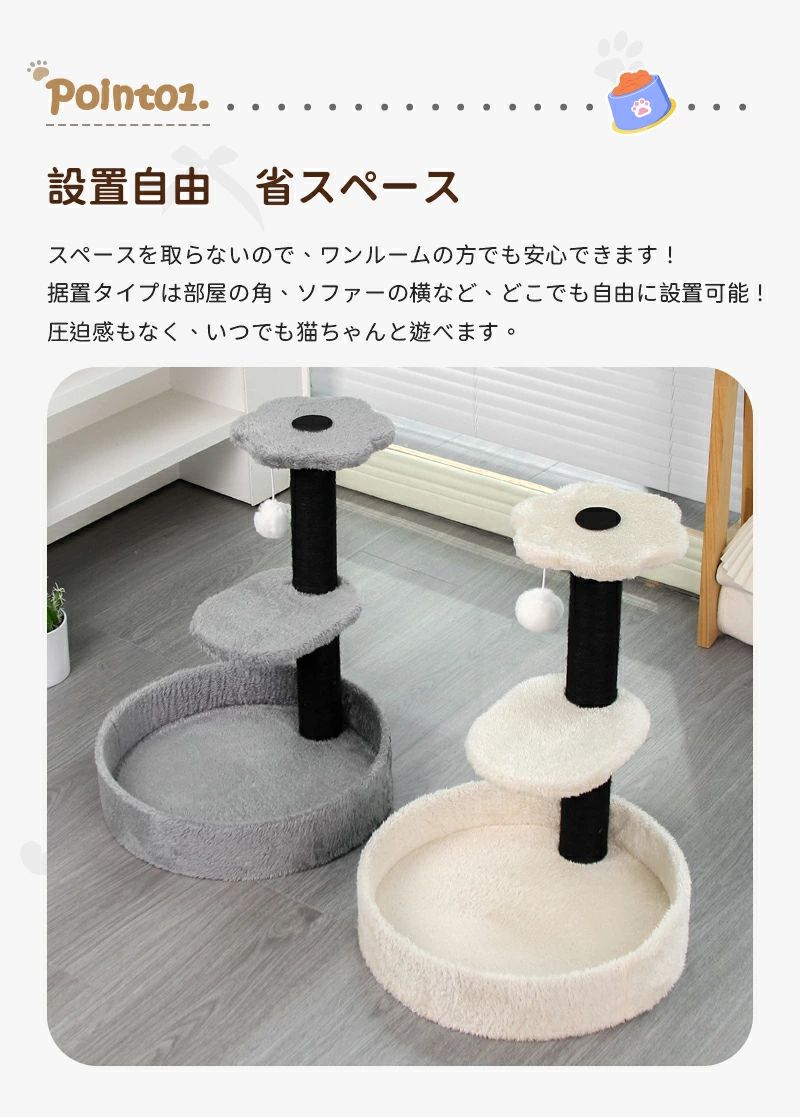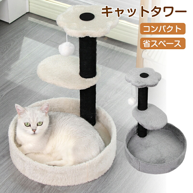 キャットタワー 省スペース 据え置き型 ペット ペットグッズ 大人気! ホワイト グレー