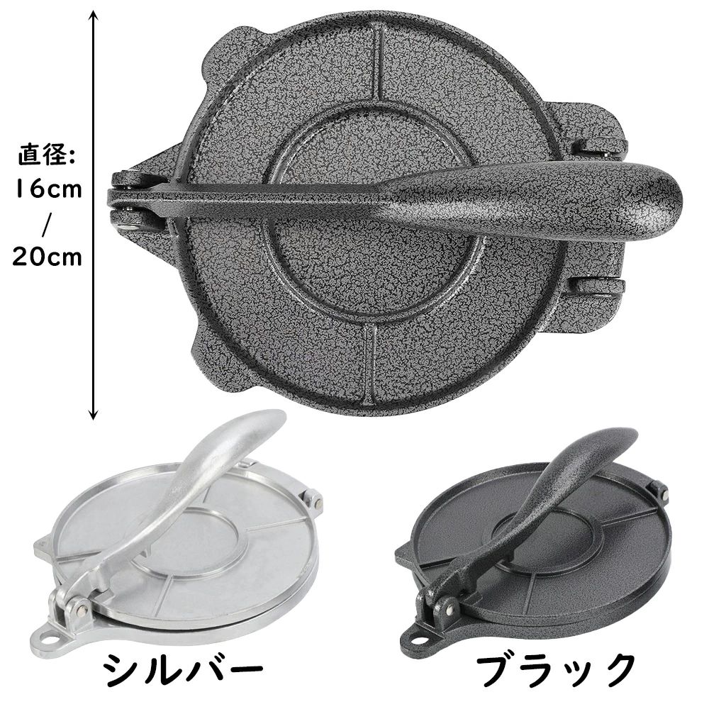 トルティーヤメーカー 頑丈 アルミ鋳造 調理 製菓道具 調理器具 その他の調理器具 その他 続々登場 ブラック シルバー 直径16cm 直径20cm