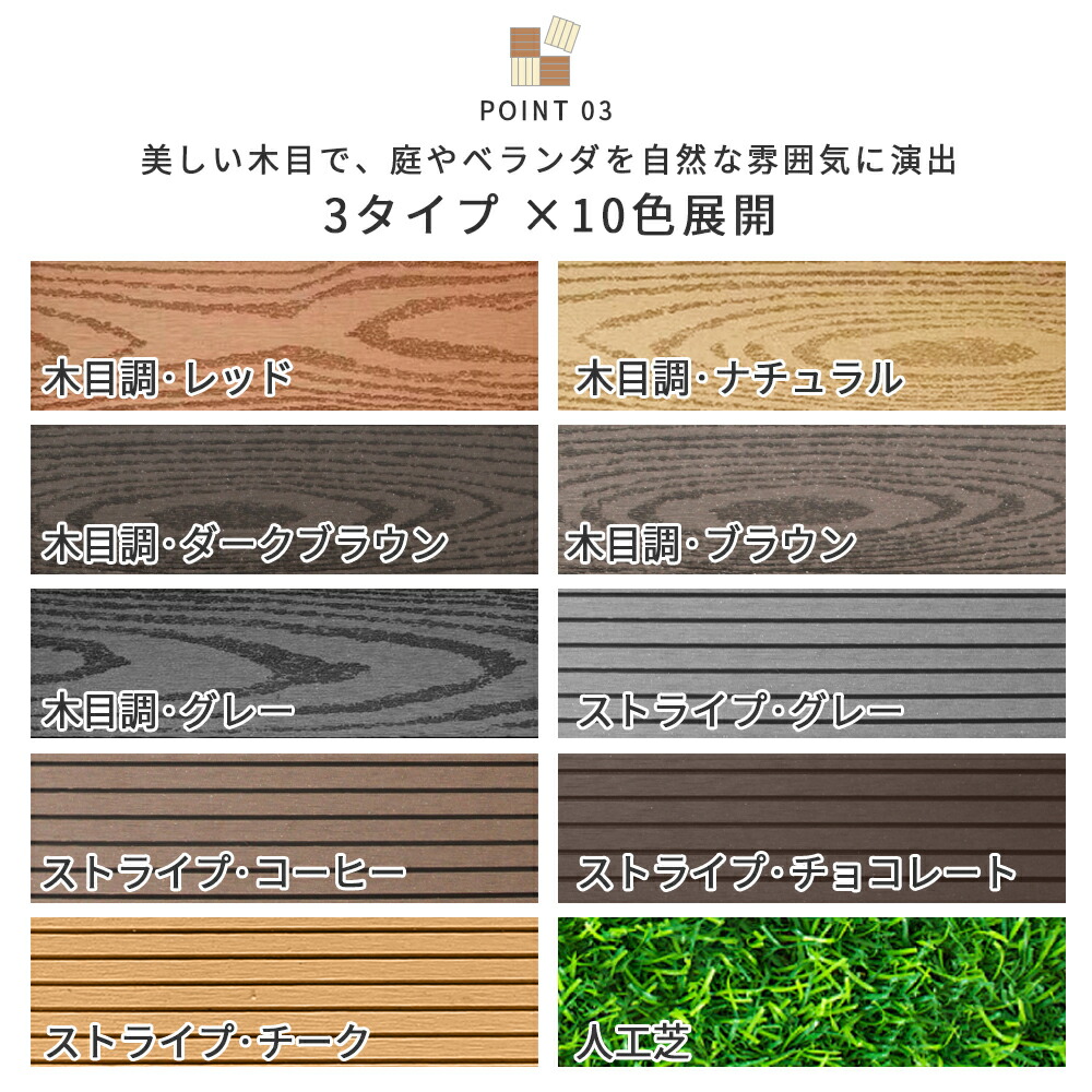 15枚~ 人工木 人工芝 ウッドパネル 人工芝 木目調ナチュラル 木目調レッド 木目調ダークブラウン 木目調ブラウン 木目調グレー ストライプ-チーク ストライプ-コーヒー ストライプ-チョコレート ストライプ-グレー 10枚 15枚 30枚 60枚 90枚 120枚 20枚 40枚 80枚