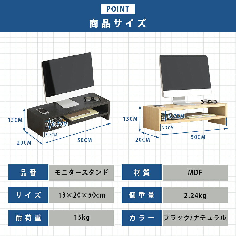 モニター台 机上ラック 50*20*1 ナチュラル ブラック