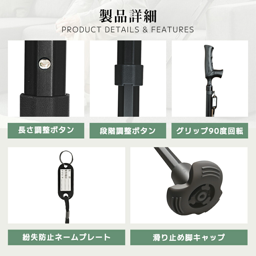 ステッキ 杖 軽量 つえ 3点杖 自立 1本 2本