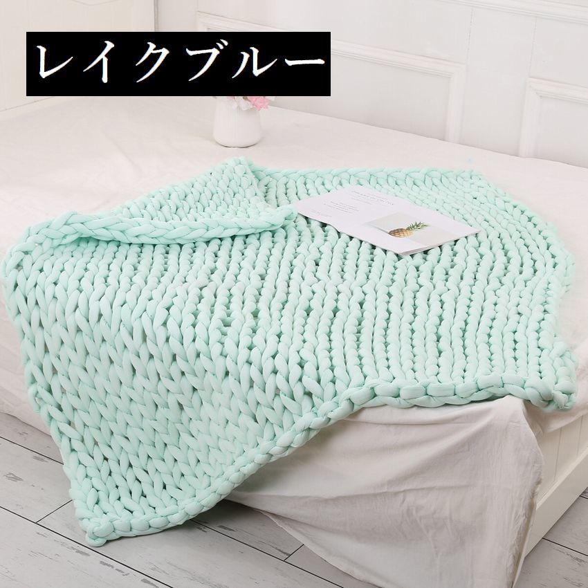 ブランケット チャンキーニットブランケ ピンク グレー コーラルピンク レイクブルー カーキ ベージュ ブルー 60×60 80×60 100×80 120×100