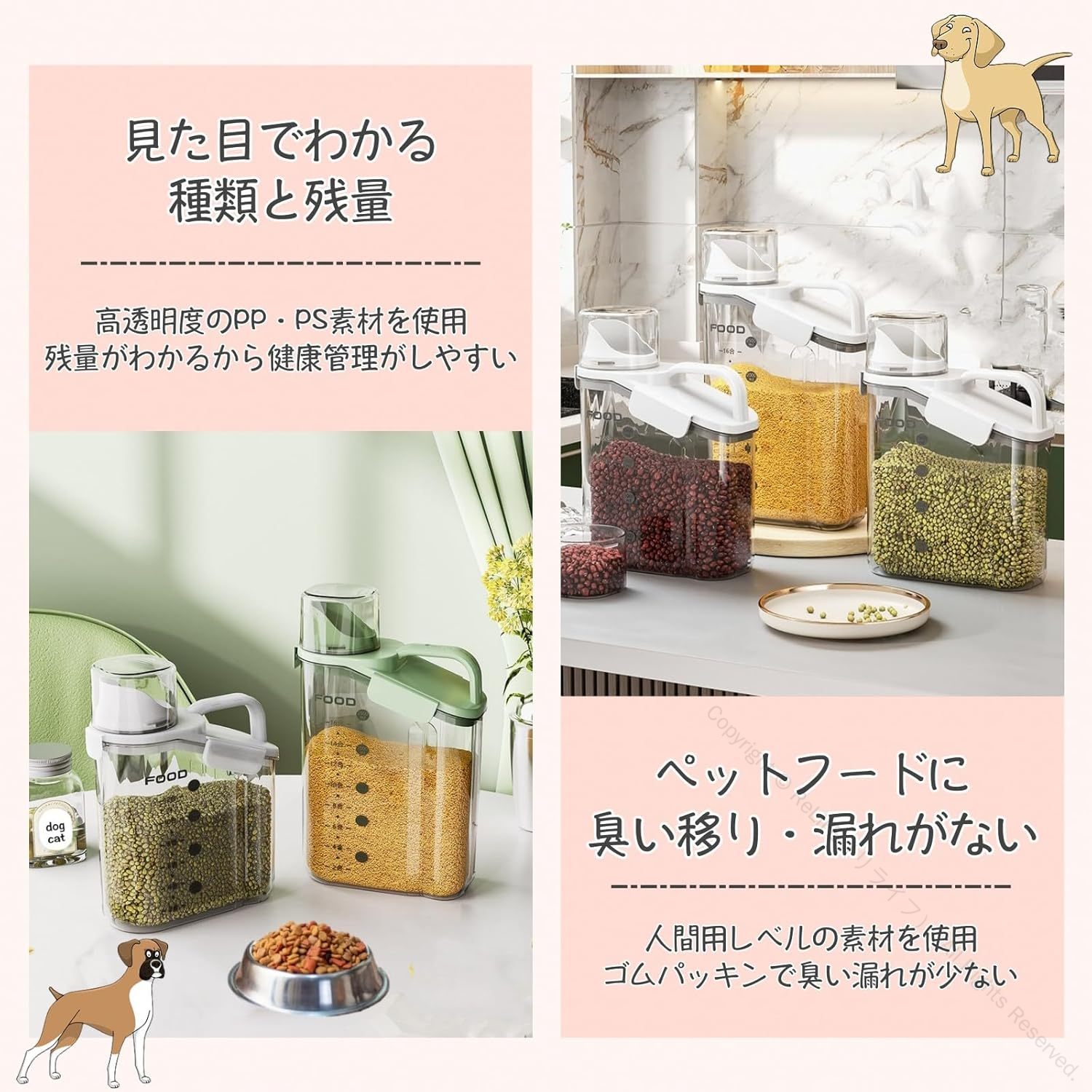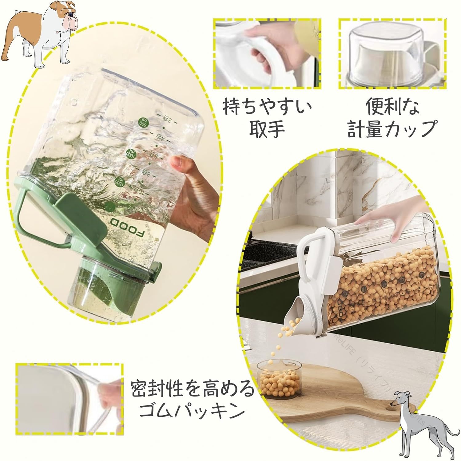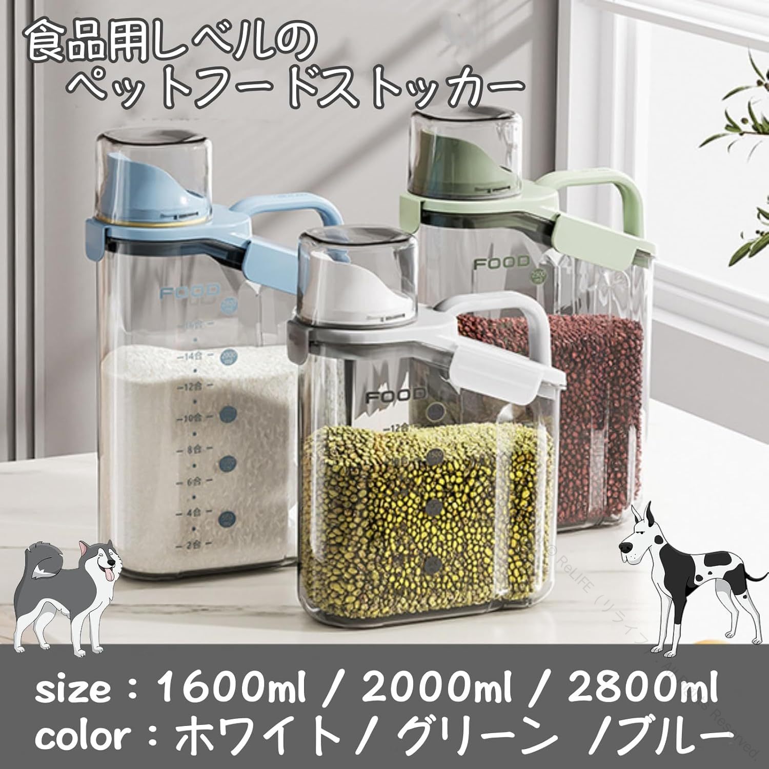 ペットフードストッカー 密閉 保存容器 ホワイト ブルー グリーン 1.6L 2.0L 2.8L