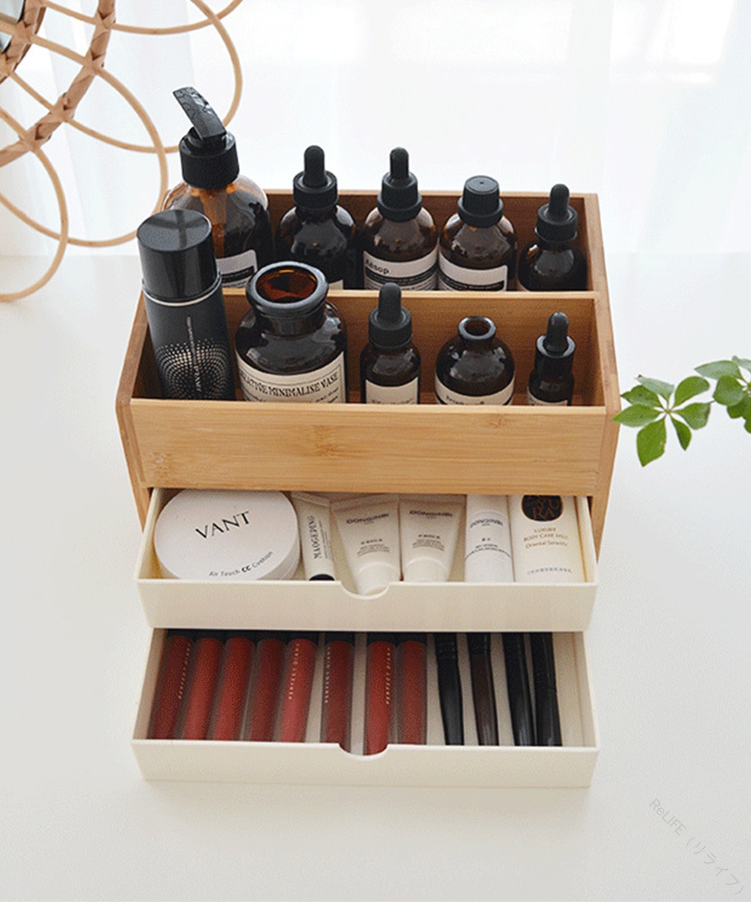 メイクボックス 収納ボックス 木製コス ホワイト ブラック