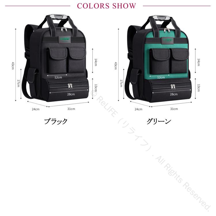 大容量 ツールバッグ リュック ツール グリーン ブラック