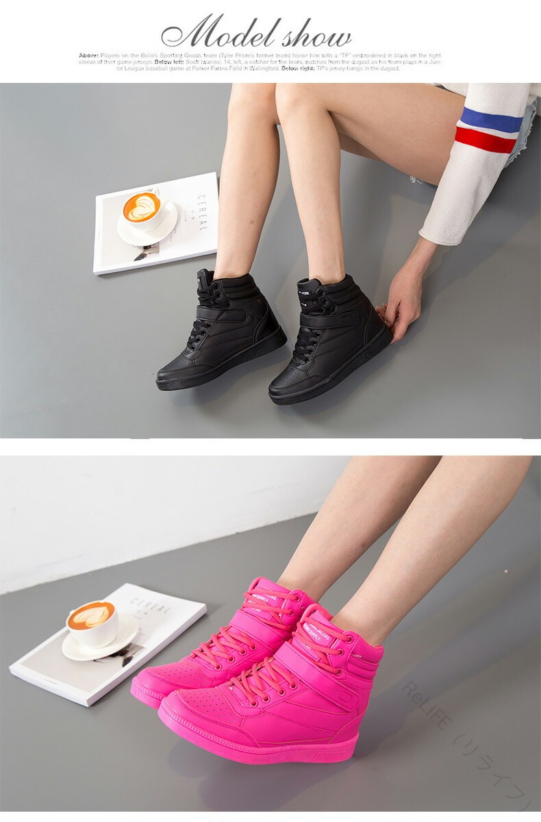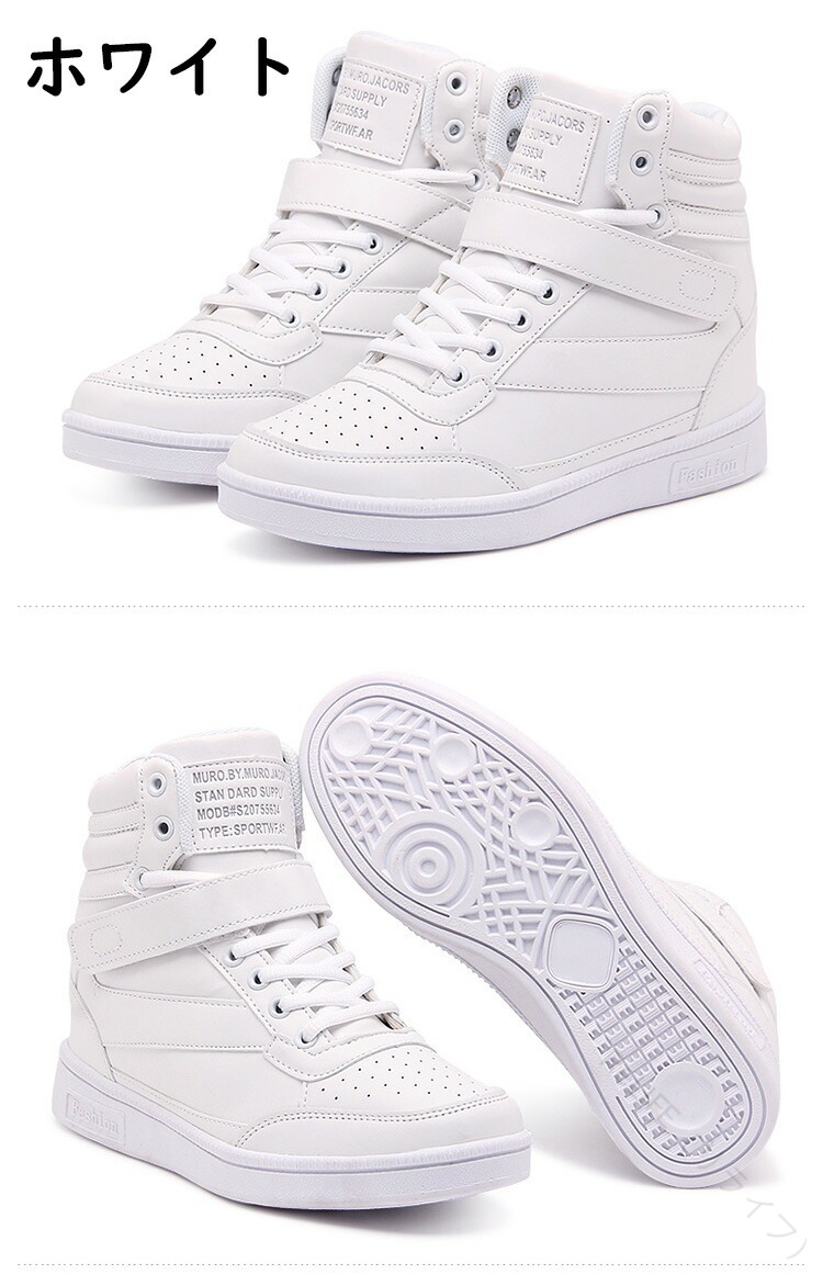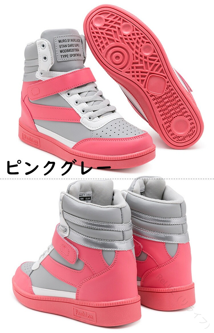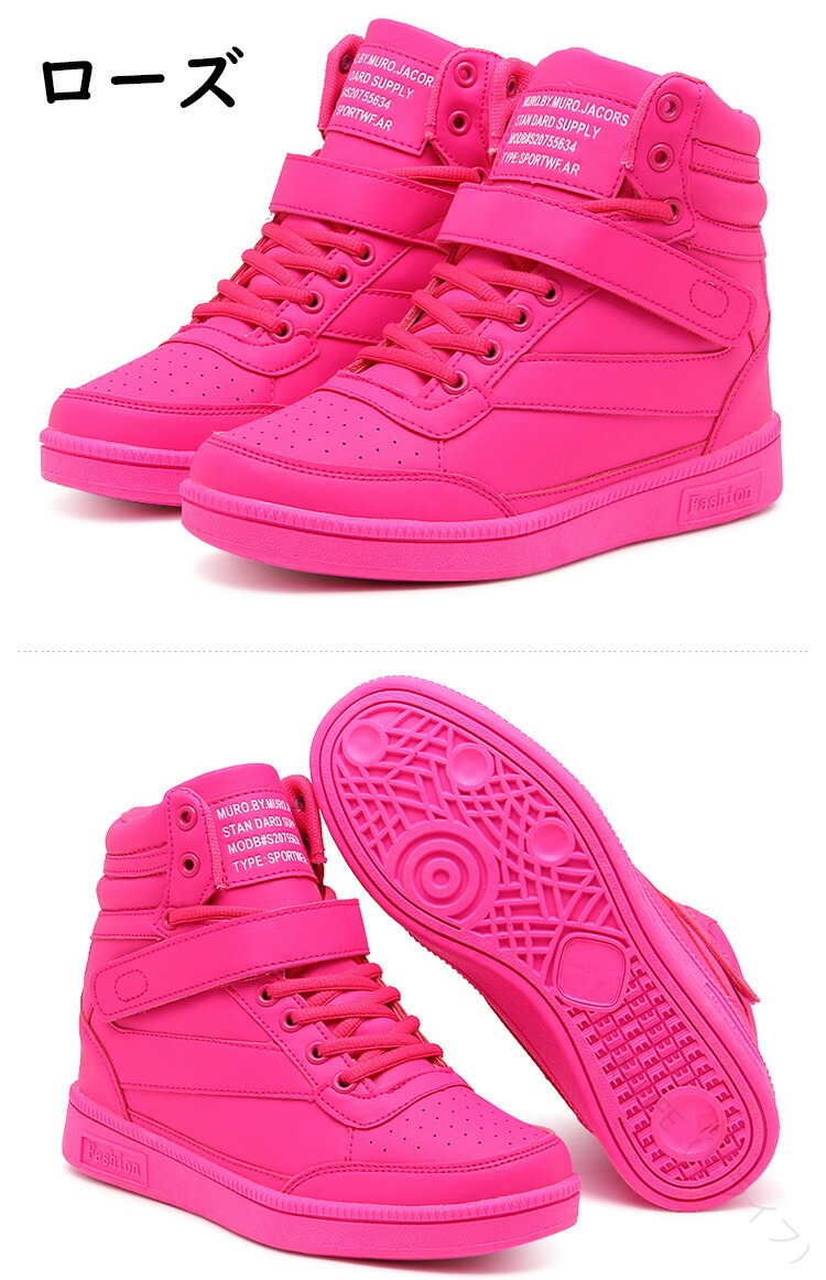 女性向けハイカットスニーカー 厚底でス レディース靴 スニーカー 人気 ホワイト ブラック ローズ 蛍光グリーン ピンクグレー 黒白 22.5cm 23.0cm 23.5cm 24.0cm 24.5cm 25.0cm