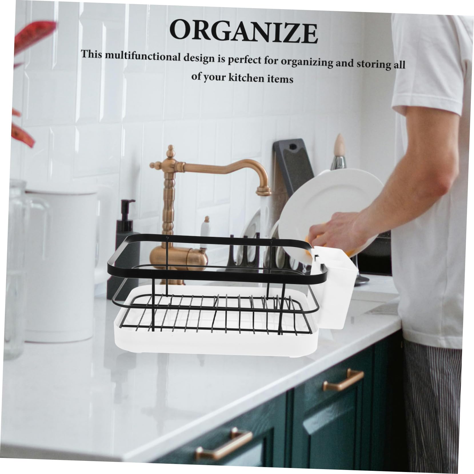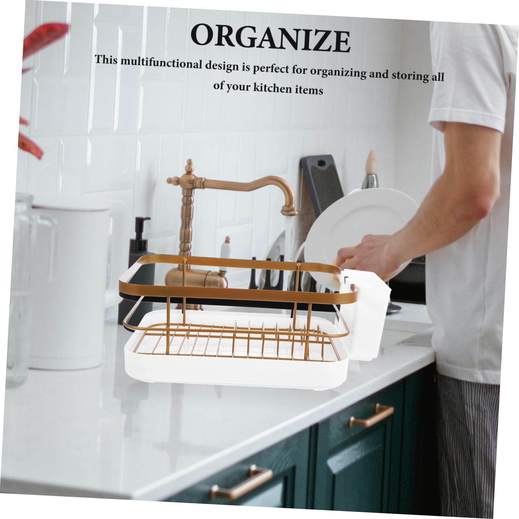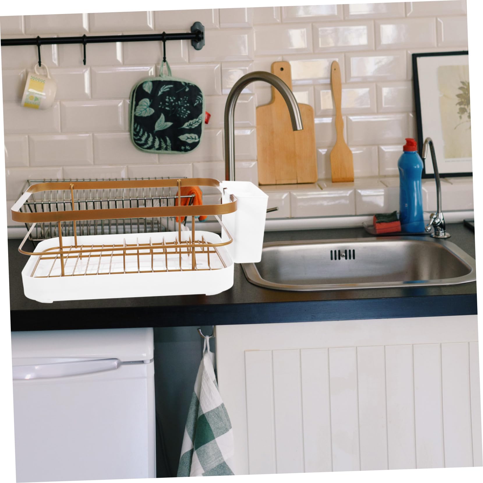 1セットキッチン用食器乾燥ラック 大容 ゴールデン 白