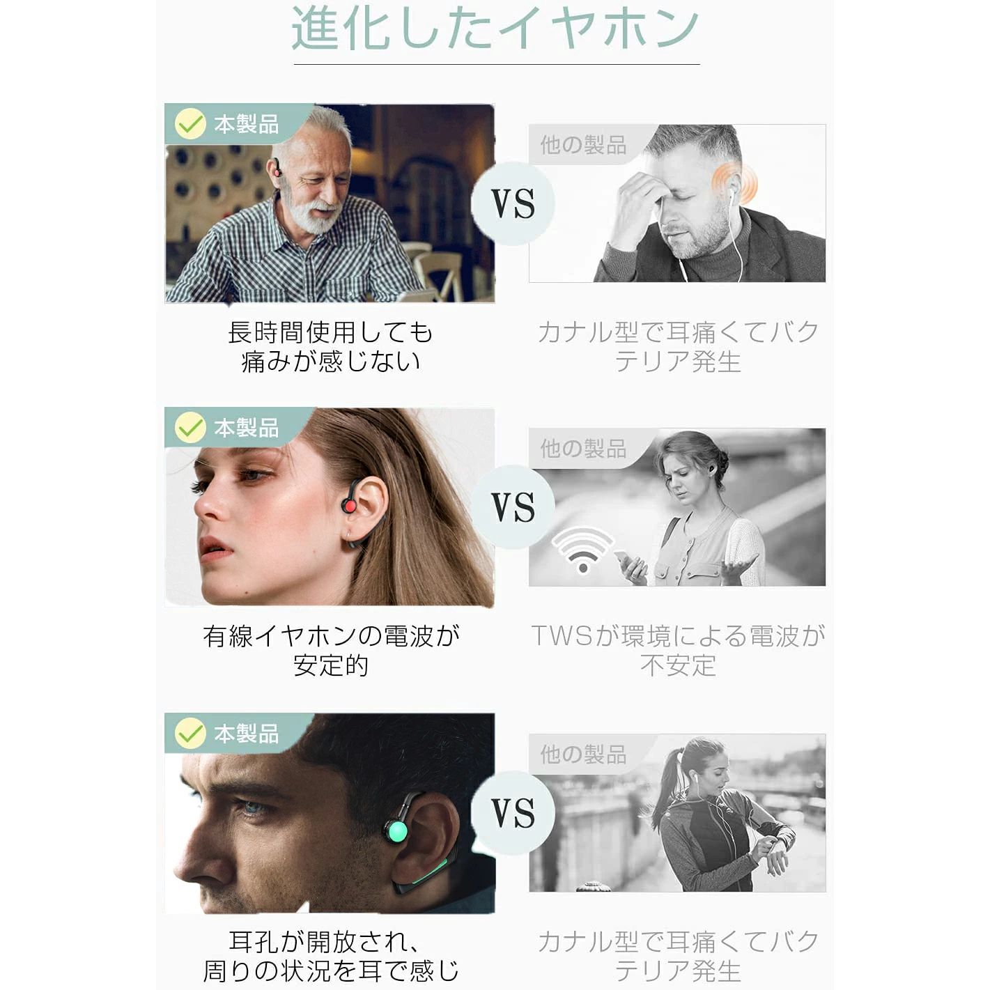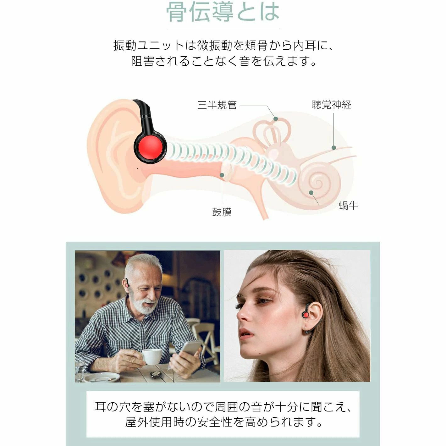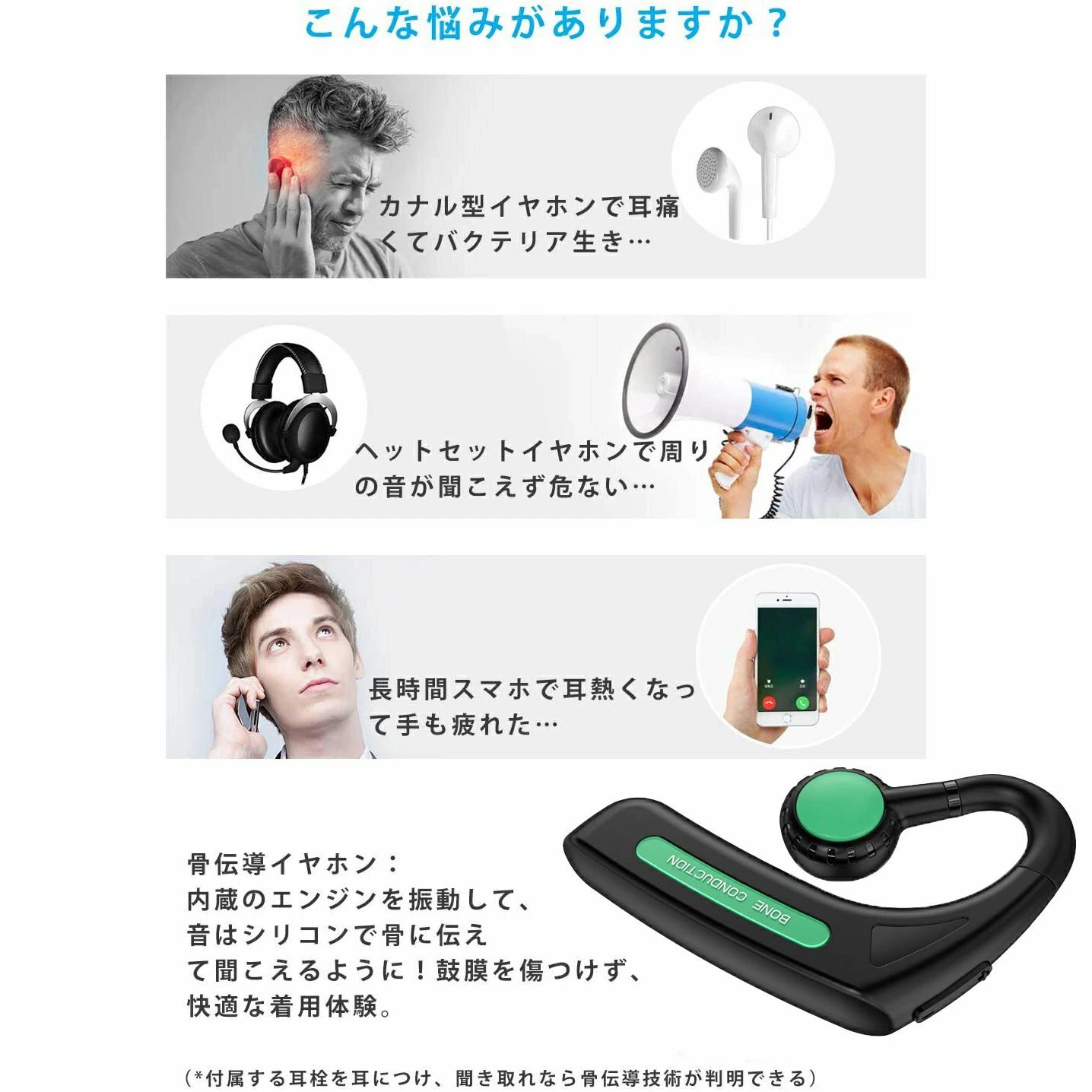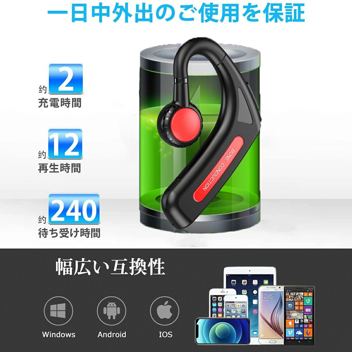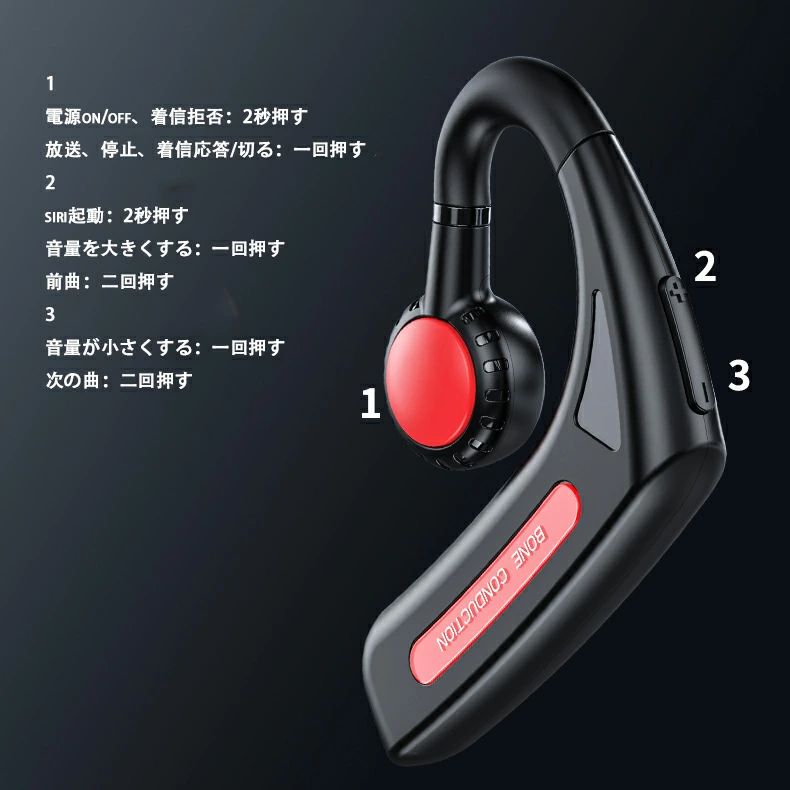 骨伝導 イヤホン Bluetooth ブラック ブルー レッド グリーン