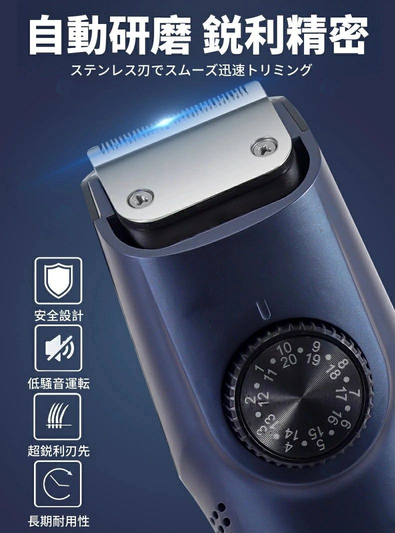 バリカン 散髪 ヘアカッター 充電式 紺色 グリーン