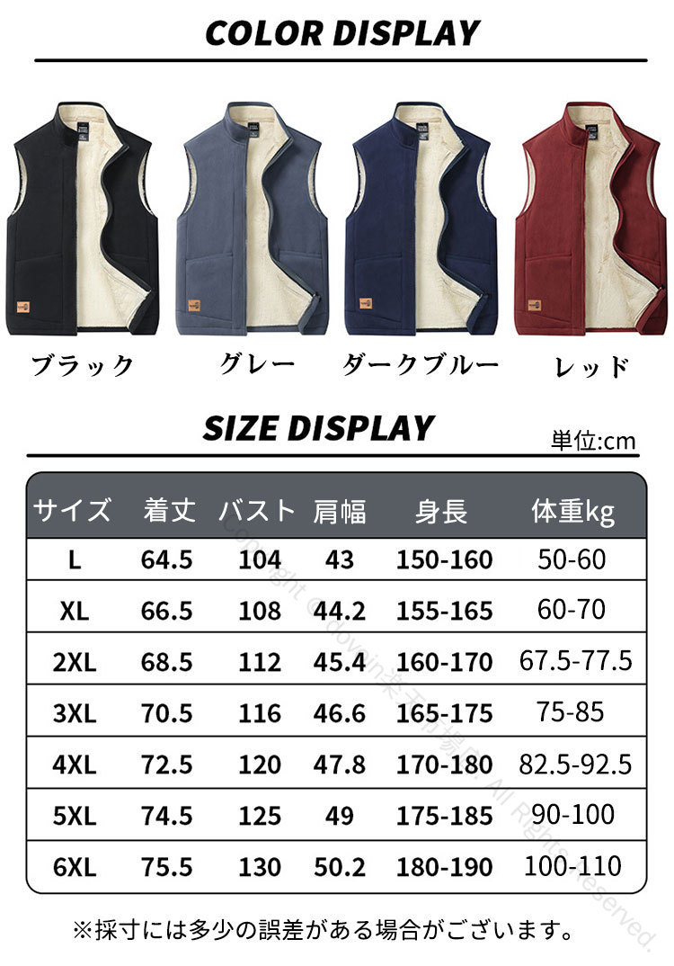 メンズ 秋冬 ベスト 裏ボア シニア メンズファッション 豊富 ブラック グレー レッド ダークブルー L XL 2XL 3XL 4XL 5XL 6XL