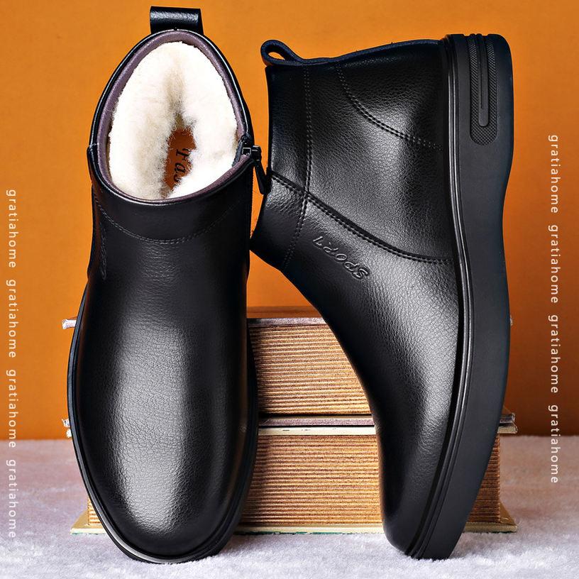 スノーブーツ ビジネスシューズ メンズ 冬用 ボア 裏起毛 防寒 暖かい ショートブーツ ワークブーツ ジッパー カジュアル 防滑 快適 柔らかい オフィス ウィンターブーツ 通勤 黒 茶 父の 仕事