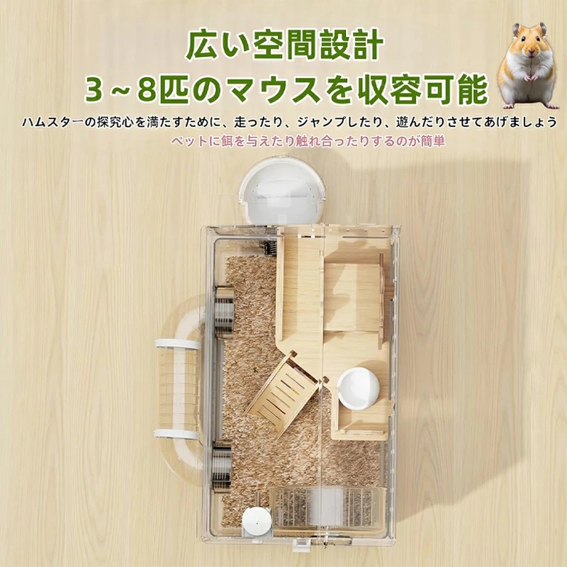 キンクマハムスター ケージ 透明 大型 キンクマ/ゴールデン/ジャンガリアンハムスター アクリルケージ クリア 45CM 2階建て 前開き 上下分離式 おしゃれ 拡張可能 脱走防止 小動 3~8匹対応