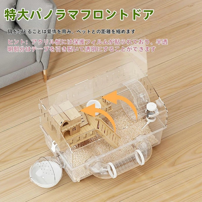 【便利な前開き設計お】しゃれで高級感あふれるデザインに、大きな前開き口部を組み合わせました。これにより、ハムスターとのコミュニケーションやエサやりが驚くほど簡単・ストレスフリーに! キンクマハムスター/ゴールデンハムスター/ジャンガリアンハムスターだけでなく、フクロモモンガ、ウサギ、爬虫類などの小動物飼育にも幅広く対応します。
