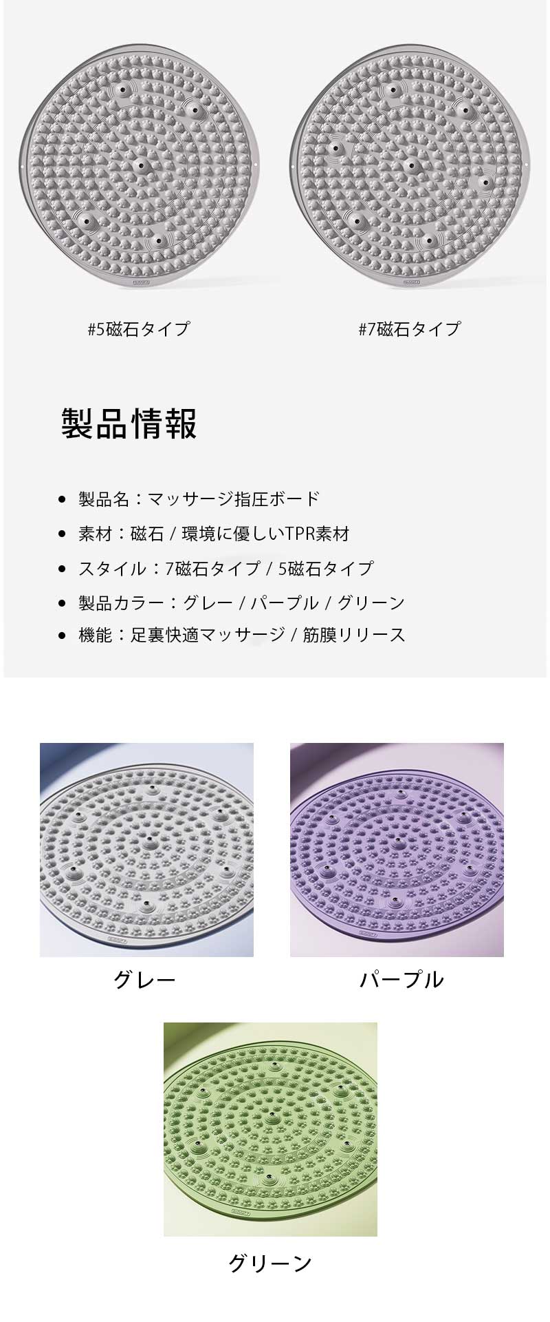 ツボ押 マグネット付き 足踏み 足ツボ グレー パープル グリーン