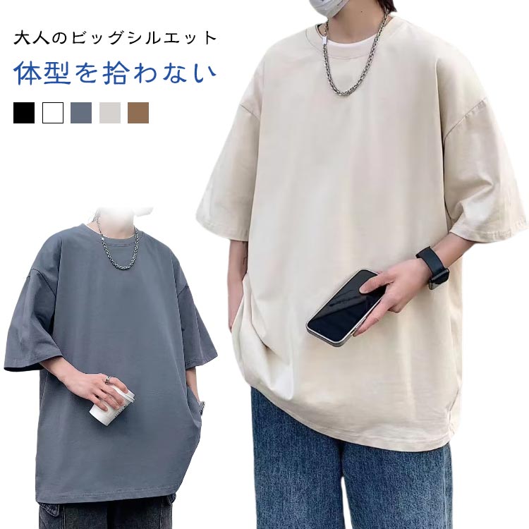 半袖 綿 大きいサイズ オーバーサイズ カップル tシャツ レディース 無地 春 男女兼用 ビッグシルエット シンプル 五分袖 夏 服 カットソー スポーツ 韓国 ファッション クルーネック