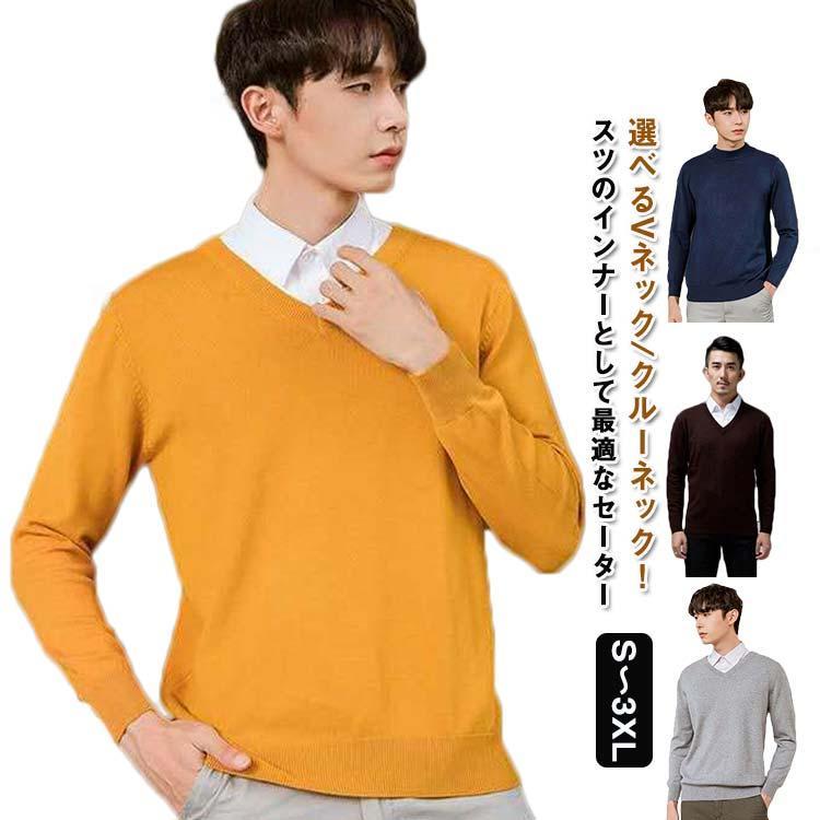 ビジネス メンズ シンプル セーター ネック クルーネック オフィスカジュアル 重ね着 紳士服 スクールセ 春秋ニット