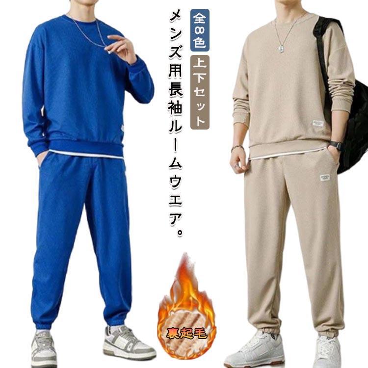 スウェットスーツ 裏起毛 上下セットアップ メンズ 秋冬春 全8色 ルームウエア スエット 長袖 トレーナー ロングパンツ 長ズボン プル パジャマ