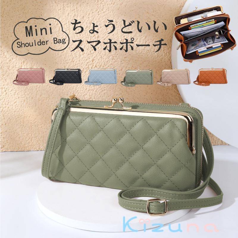 スマホショルダー スマホポーチ 横型 ショルダー レディース 財布 多層ポケット がま口 バッグ お財布ショルダー 軽量 肩掛け PU 携帯
